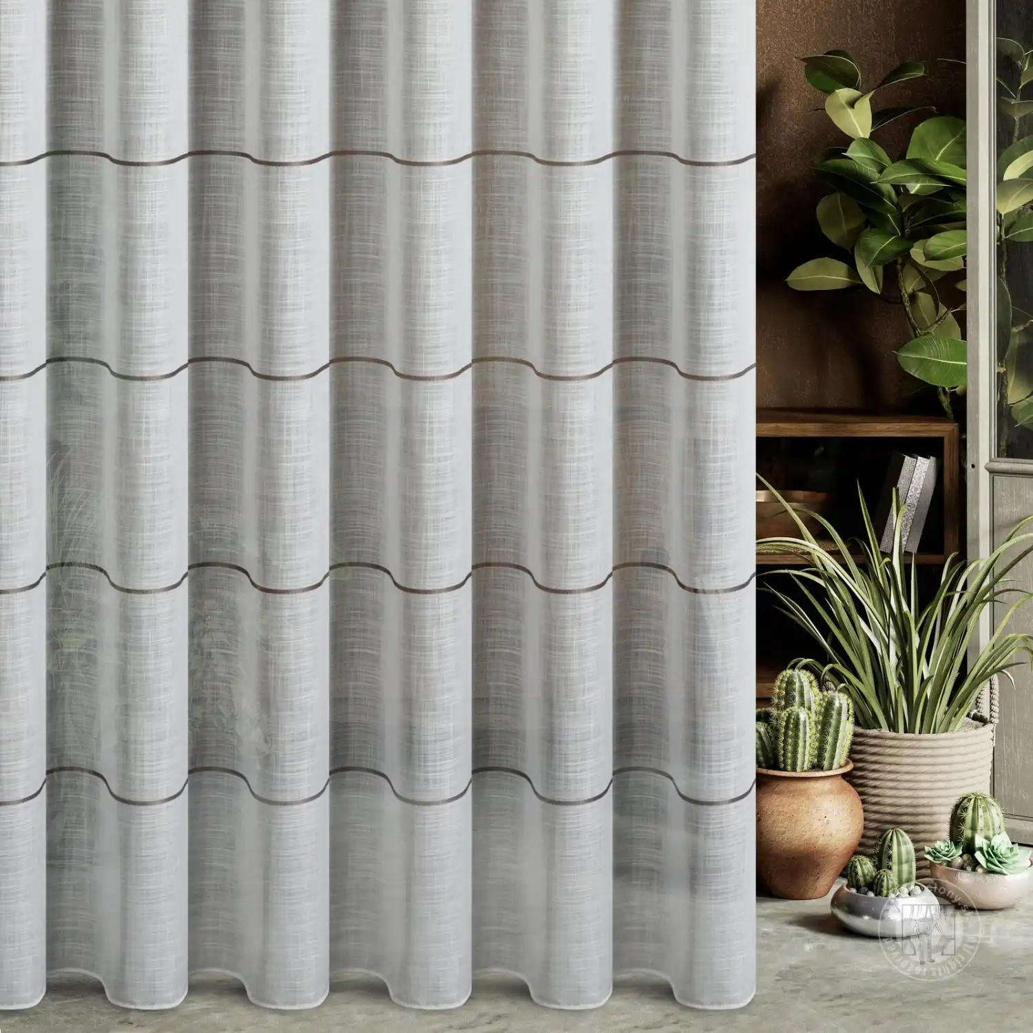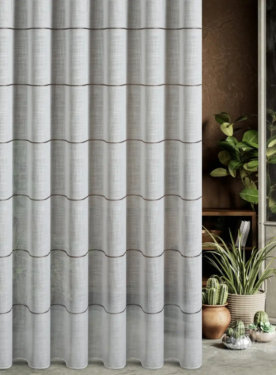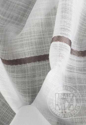Táto záclona z ľahkej etamíny je perfektnou voľbou pre tých, ktorí oceňujú jemnú eleganciu. Jej mierne priehľadná štruktúra krásne rozptyľuje svetlo a vytvára v interiéri útulnú a harmonickú atmosféru. Tenké horizontálne pruhy dodávajú nádych ľahkosti a moderného charakteru bez toho, aby zahlcovali dizajn. Záťažový lem zaisťuje rovnomerné a esteticky splývavé línie látky bez nutnosti dodatočného žehlenia.