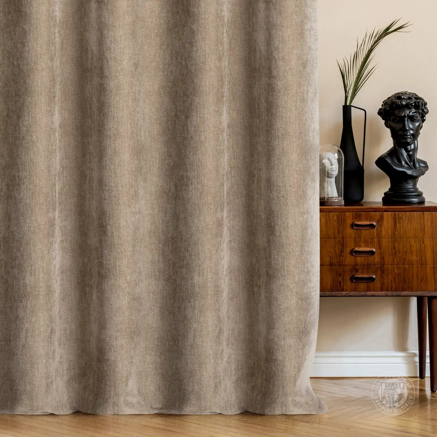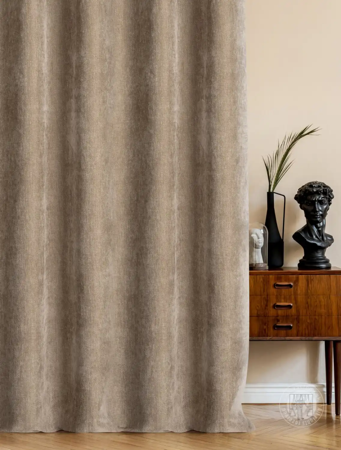Tento záves so ženilkovou textúrou je perfektným doplnkom do interiérov zariadených v prírodnom alebo boho štýle. Látka s výraznou väzbou a jemnou textúrou prináša do miestnosti teplo a útulnosť. Jednofarebná farba zdôrazňuje jednoduchosť a harmóniu.