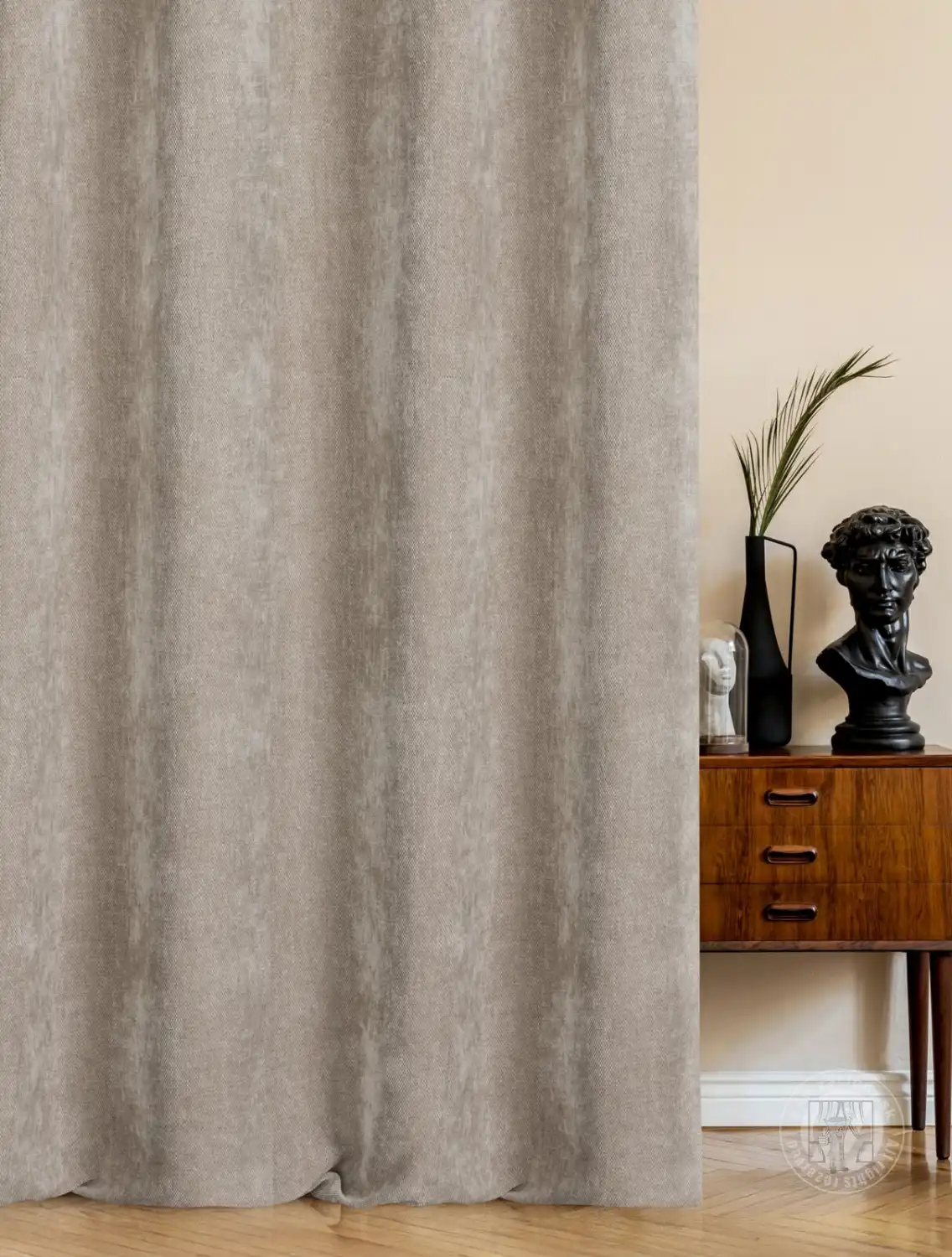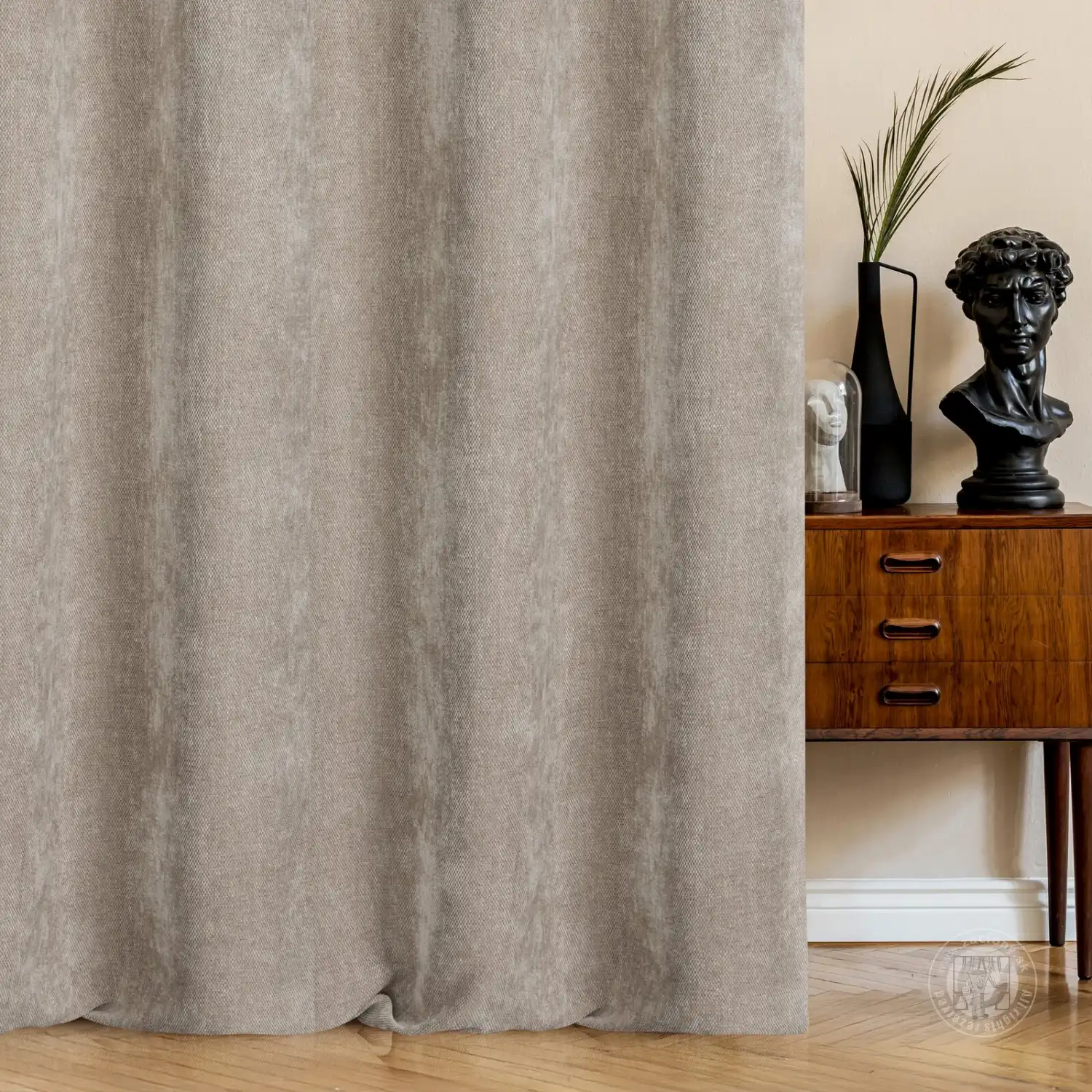Tento záves so ženilkovou textúrou je perfektným doplnkom do interiérov zariadených v prírodnom alebo boho štýle. Látka s výraznou väzbou a jemnou textúrou prináša do miestnosti teplo a útulnosť. Jednofarebná farba zdôrazňuje jednoduchosť a harmóniu.