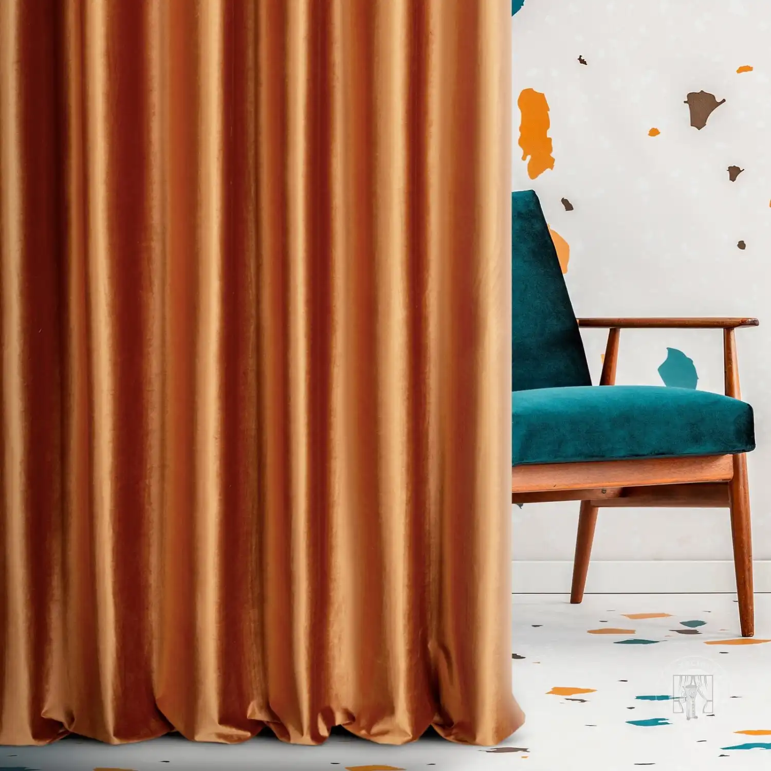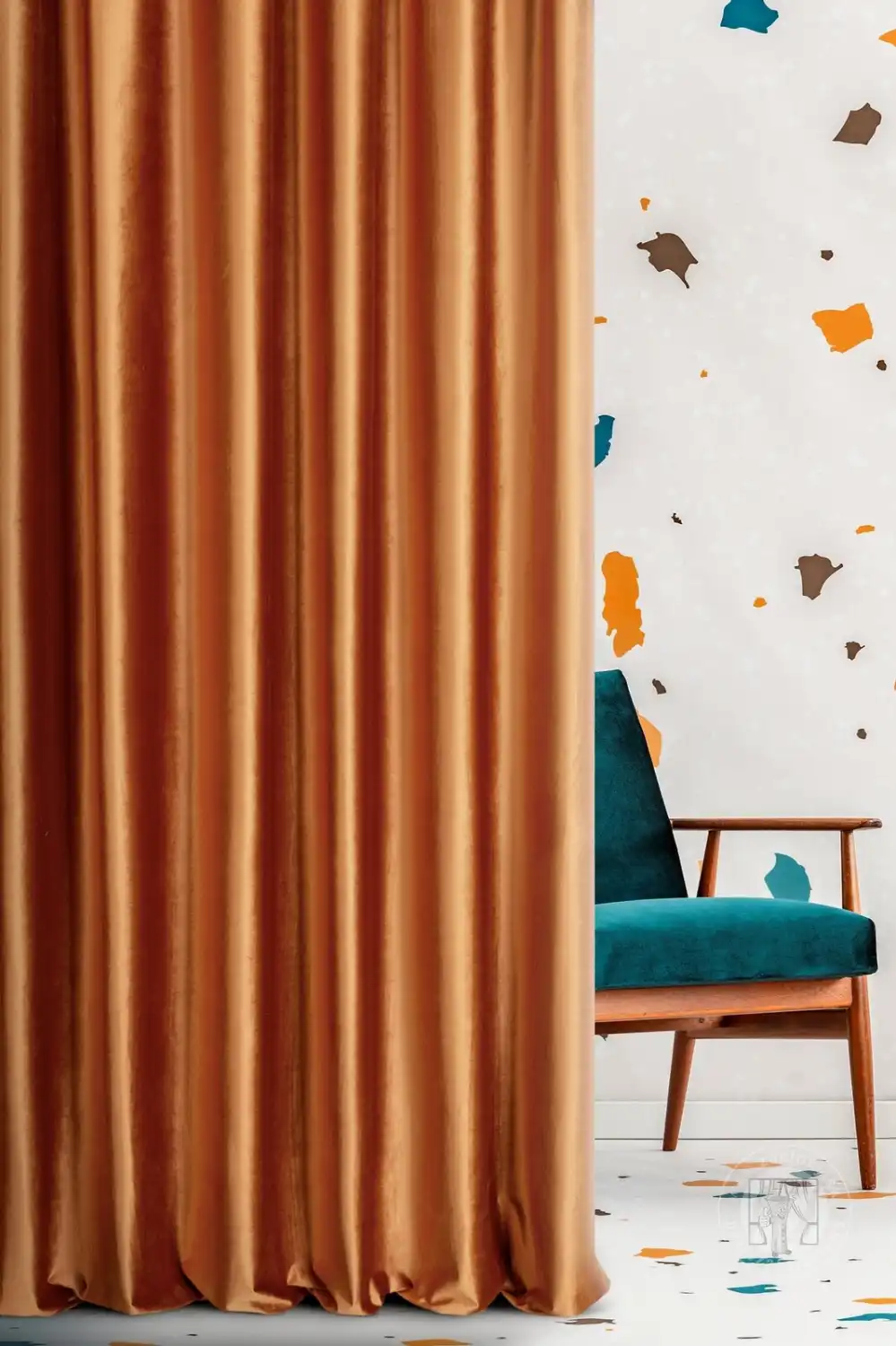 Výnimočne módna a elegantná zamatová látka s mäkkou, zamatovou textúrou a hladkým povrchom s jemným leskom. Vďaka svojej hustej štruktúre sa pri zavesení jemne vlní, dokonale odráža svetlo a zvýrazňuje hĺbku a intenzitu farieb. Hrubší materiál účinne blokuje slnečné svetlo, chráni vaše súkromie a vytvára príjemnú atmosféru v interiéri. Tento rafinovaný materiál vizuálne zahrieva interiér a dodáva mu štýl. Jednotná farba látky jemne obaľuje okno a vytvára jemné pozadie pre dekoráciu, zatiaľ čo široká škála hlboko sýtych farieb vám umožňuje zladiť ju s farebnou schémou vášho interiéru.