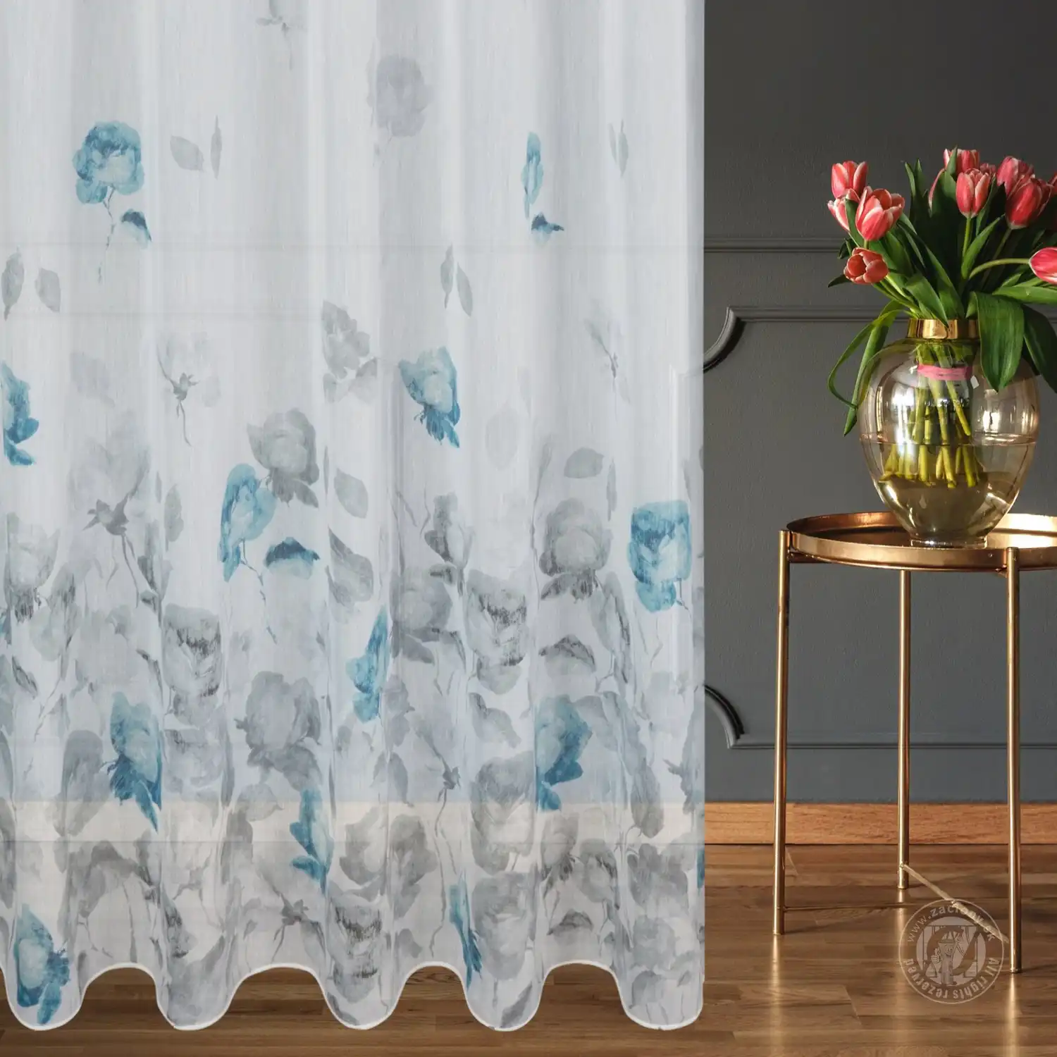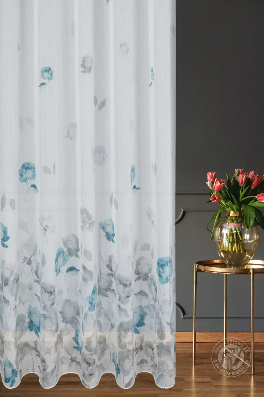 Táto polopriehľadná batistová látka, ozdobená umeleckou potlačou kvetov maľovaných štetcom, je dokonalým doplnkom každého interiéru a dodáva mu romantickú atmosféru. Táto ľahká batistová látka s matným povrchom a hustou väzbou je príjemná na dotyk a má prirodzený vzhľad, krásne sa prelína svetlom z okna a perfektne funguje ako samostatná záclona.