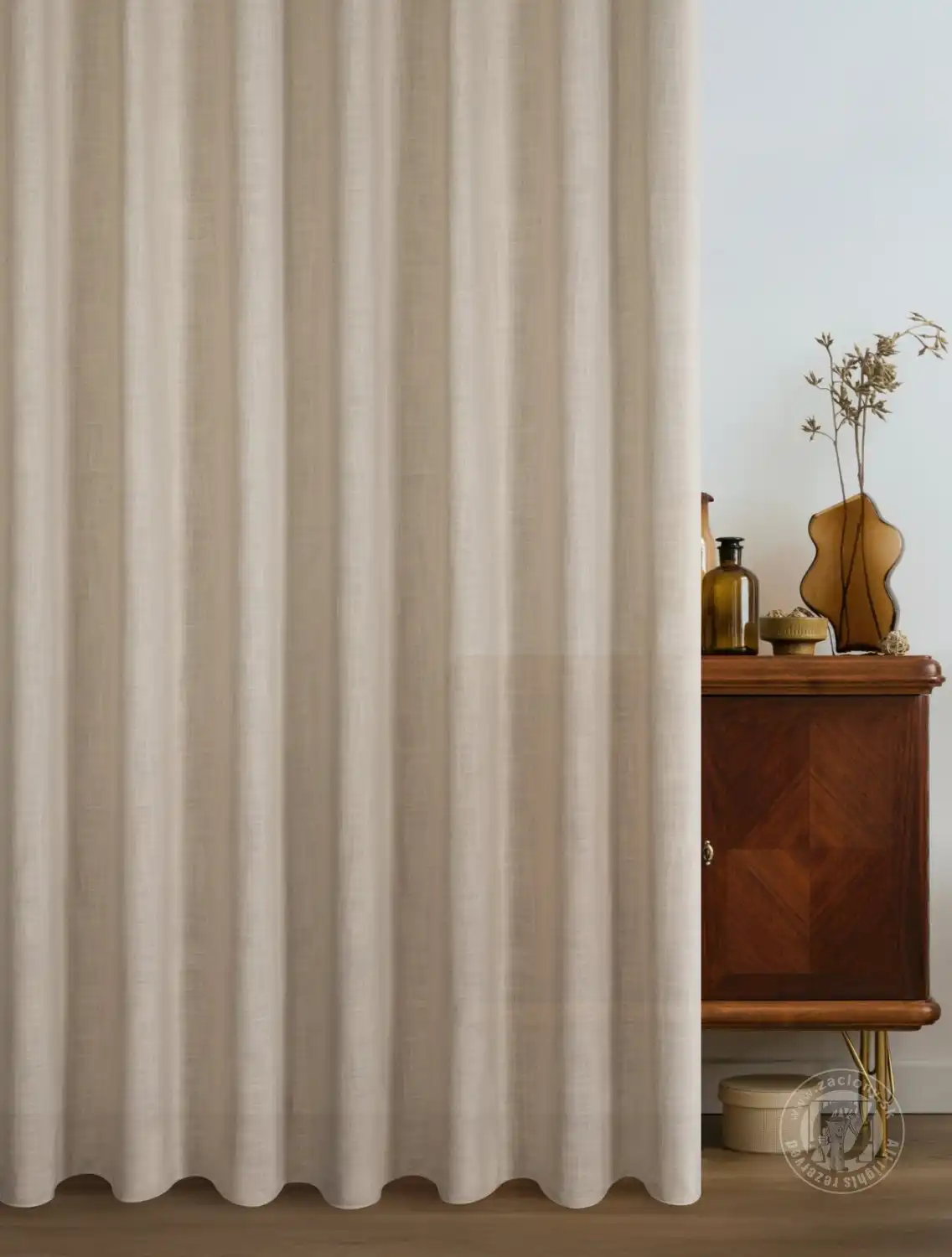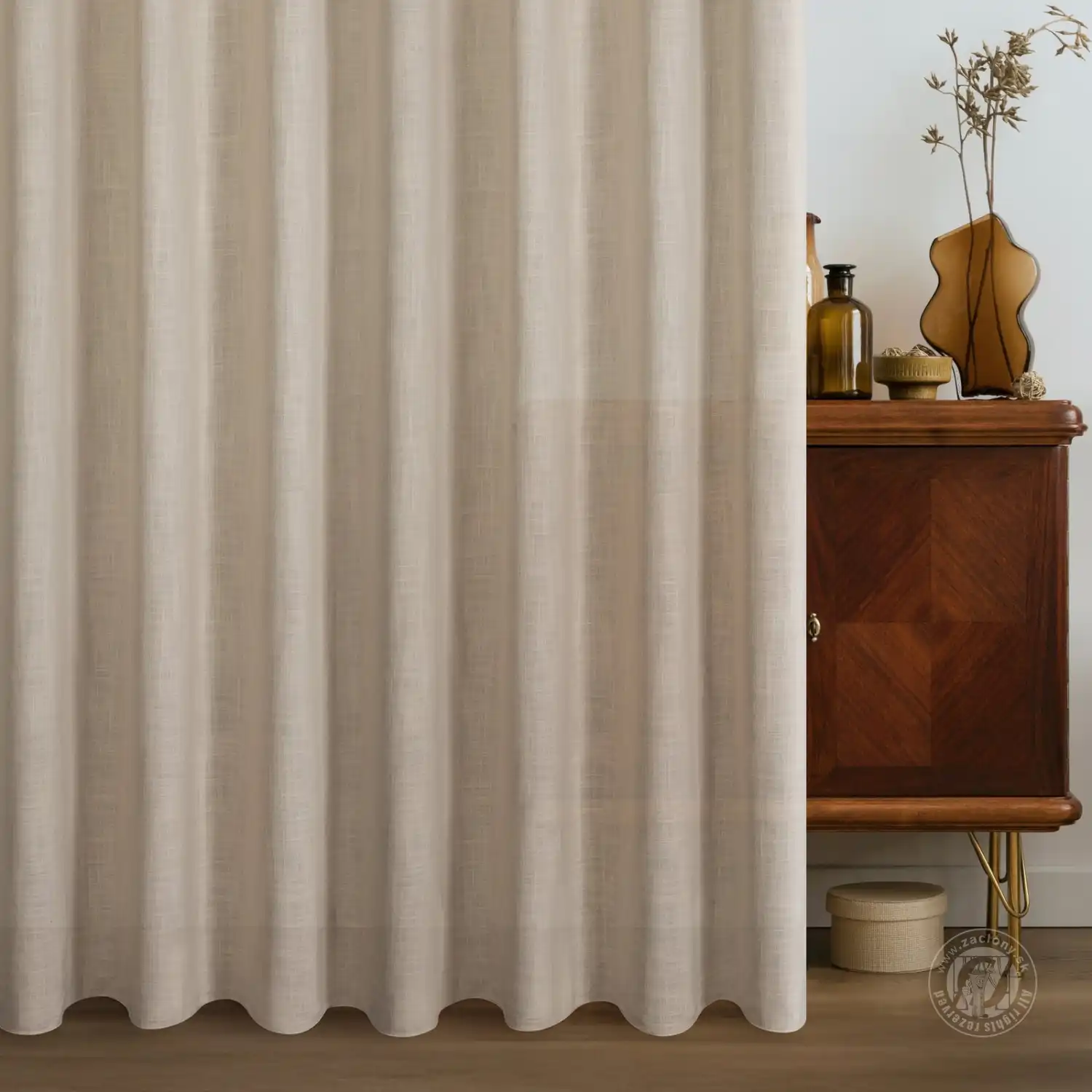 Tkanina na závesy v ekologickom štýle s prímesou bavlny je ideálnou voľbou pre moderné aj prírodne ladené interiéry. Vyznačuje sa jemným, hladkým povrchom a jednofarebným prevedením, ktoré sa ľahko kombinuje s rôznymi štýlmi bývania. Vďaka spojeniu polyesteru a bavlny je príjemná na dotyk, dobre priedušná a zároveň si zachováva svoju pevnosť a odolnosť.