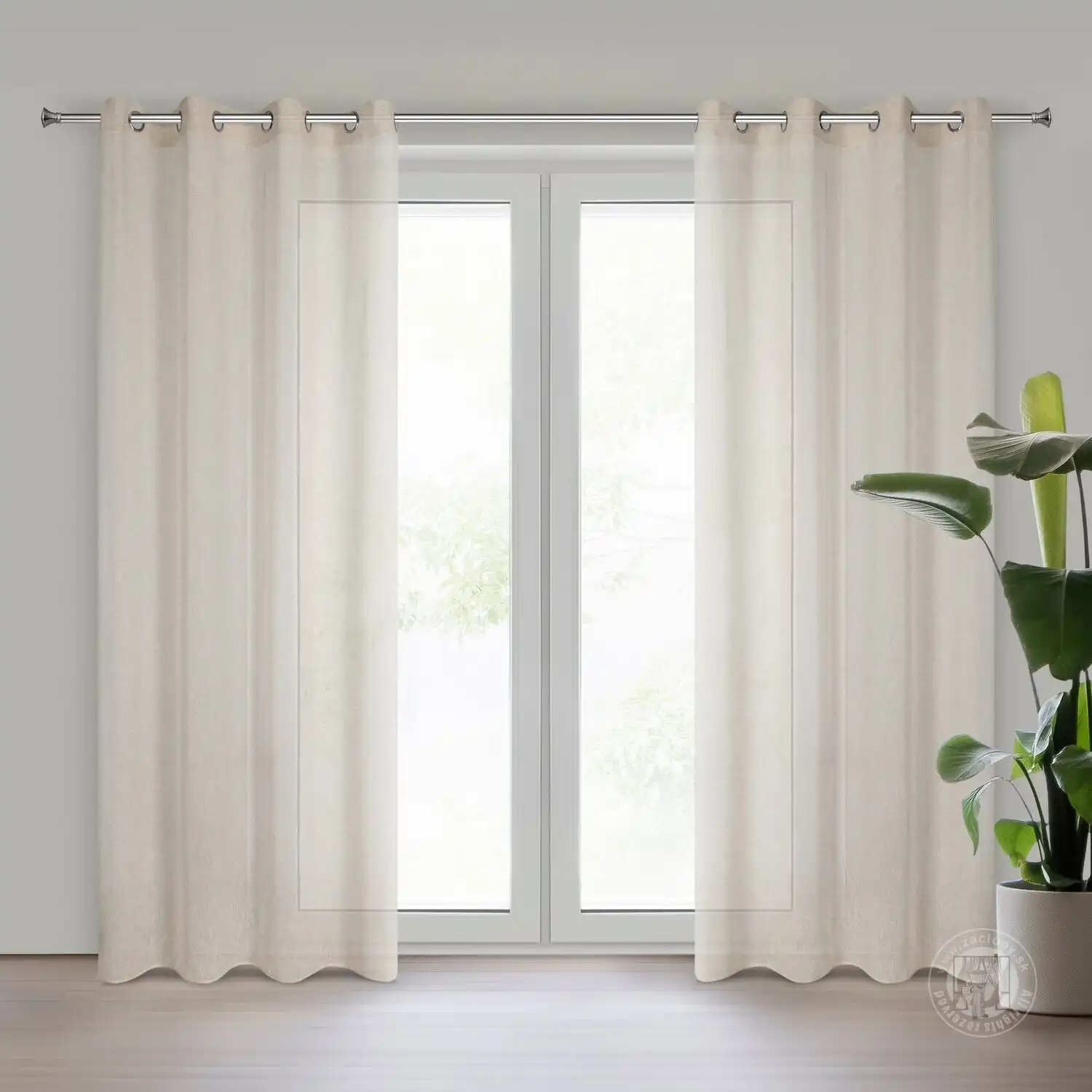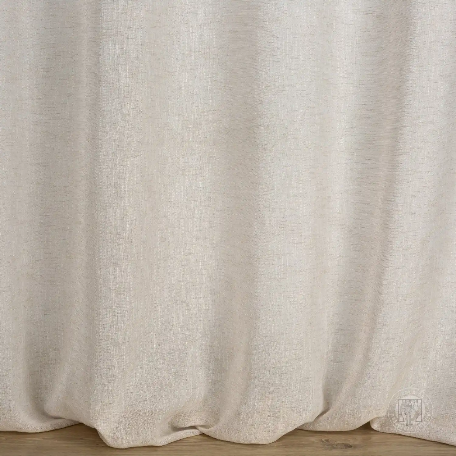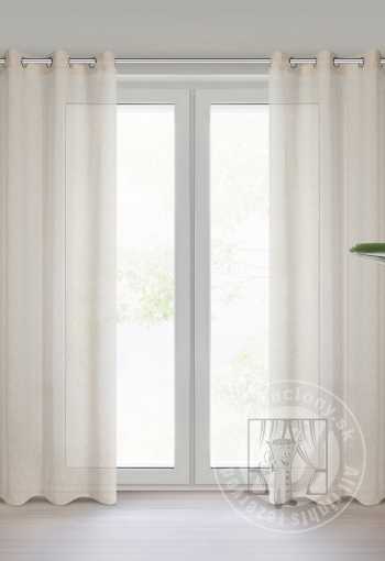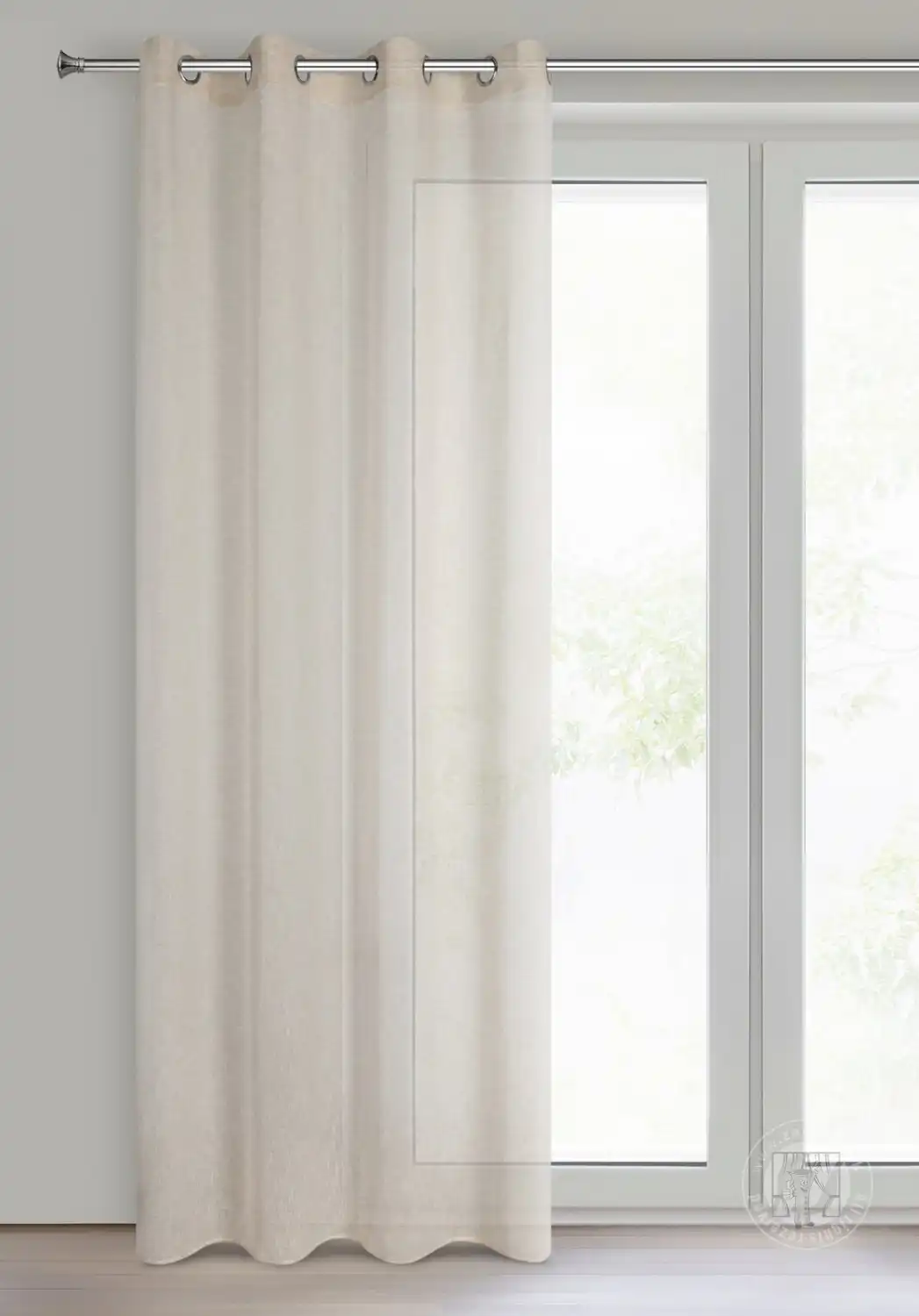 Hotový záves ANGELICA je vyrobený z ľahkej látky, ktorá jemne prepúšťa svetlo a dodáva každej miestnosti nádych ľahkosti a útulnosti. Látka sa vyznačuje jemným vzorom „dažďa“ – jemné, zvislé čiary rozložené po látke, ktoré závesu dodávajú elegantný, mierne trblietavý efekt.