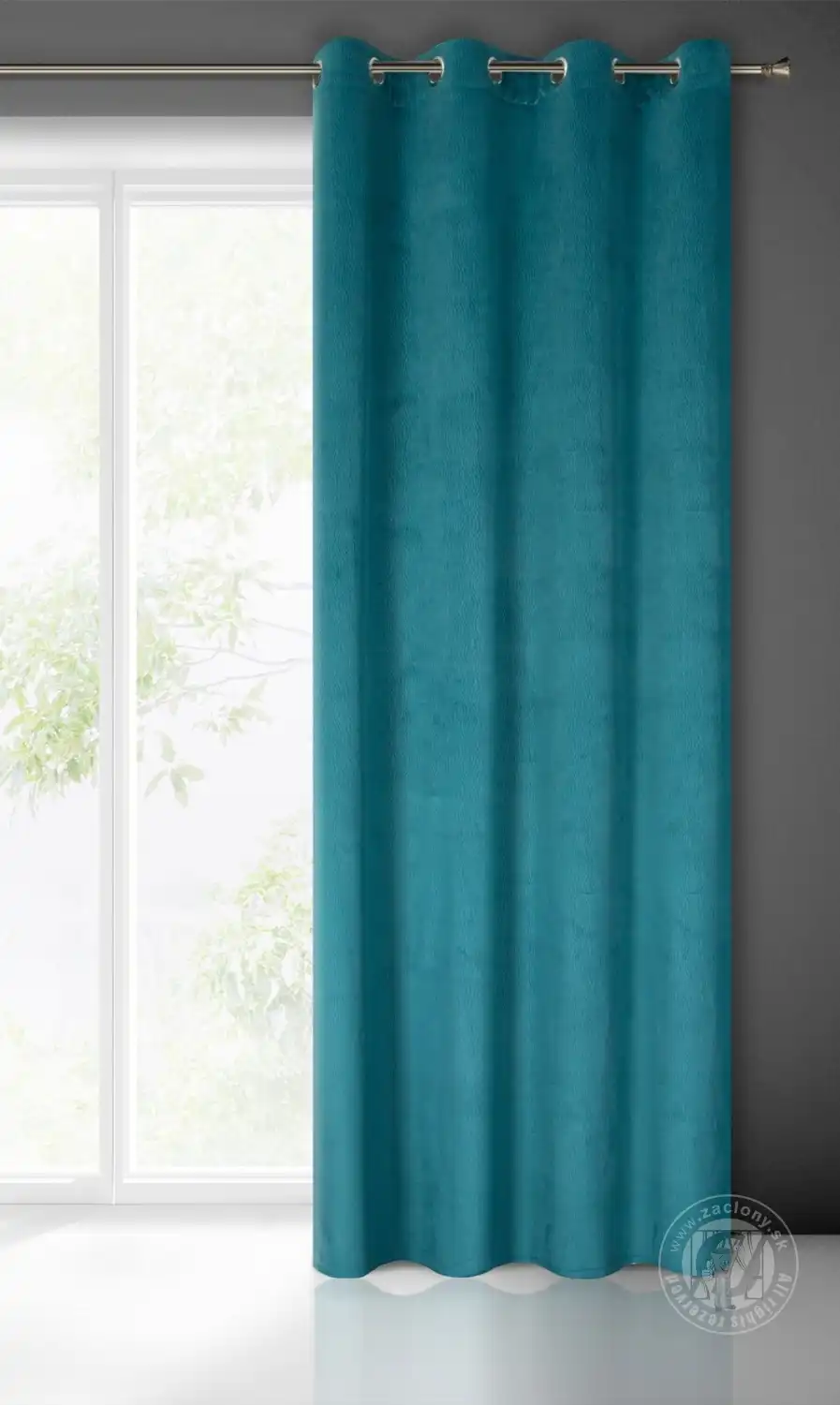 Mäkké zamatové látky decentne a elegantne dopĺňajú akýkoľvek interiérový dizajn a zdôrazňujú jeho štýl. Tento výrazný záves vyrobený z jednofarebného mäkkého zamatu priťahuje pozornosť svojím reliéfnym vzorom, ktorý pokrýva celý jej povrch.