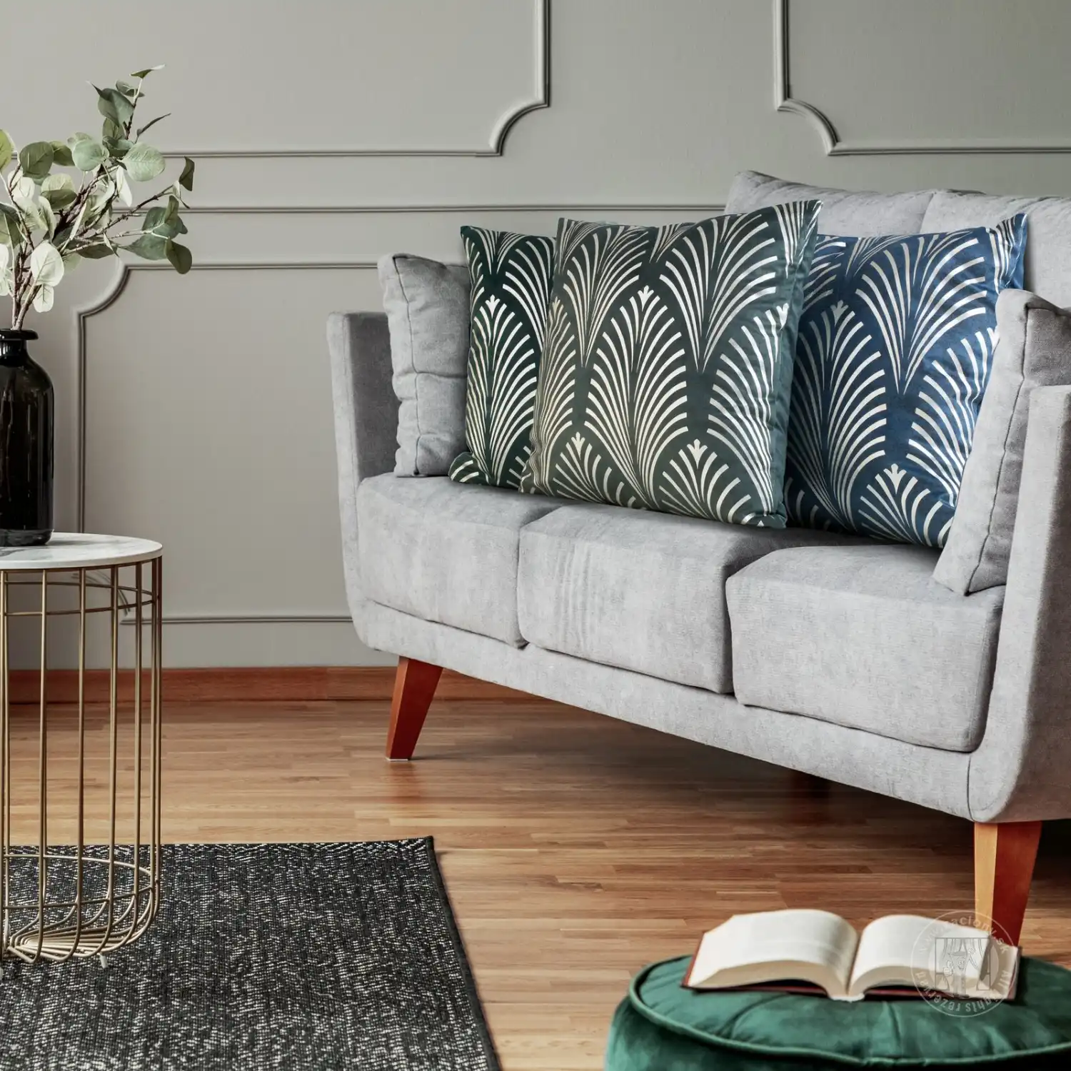 Táto výrazná obliečka na vankúš z mäkkého zamatu priťahuje pozornosť svojou jemnou striebornou potlačou. Trblietavá strieborná potlač vyniká na kontrastnom pozadí a zdôrazňuje eleganciu a štýl interiéru. Zips všitý na jednej strane umožňuje jednoduchú zmenu dekorácie.