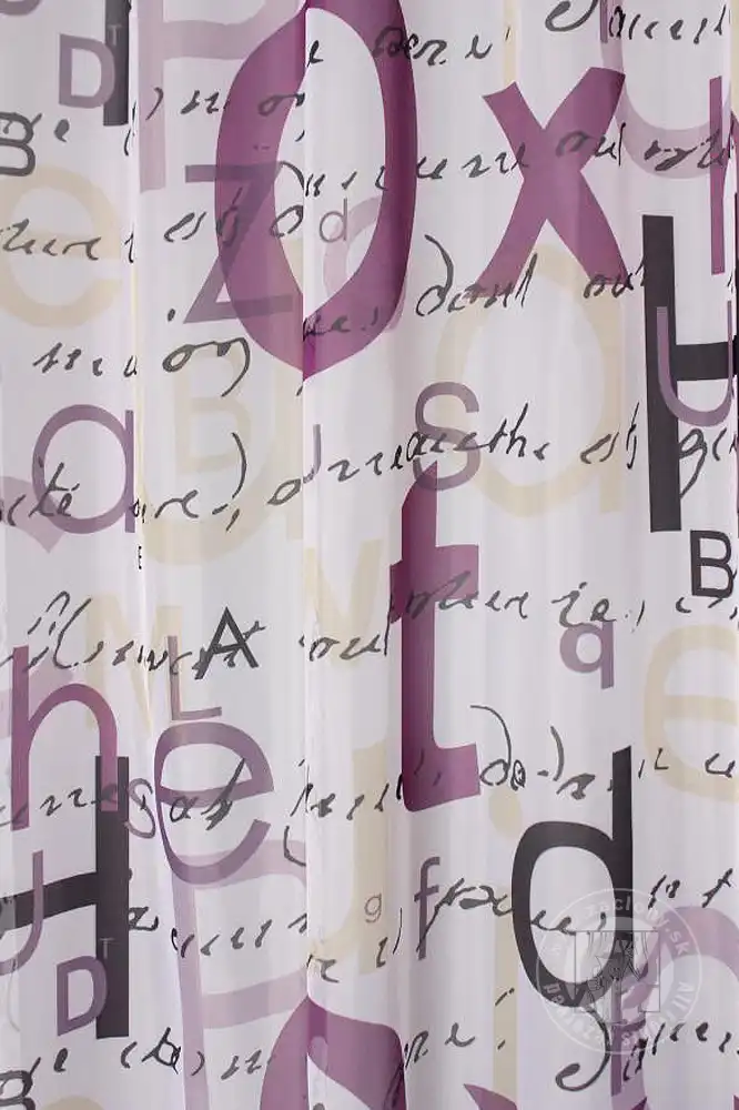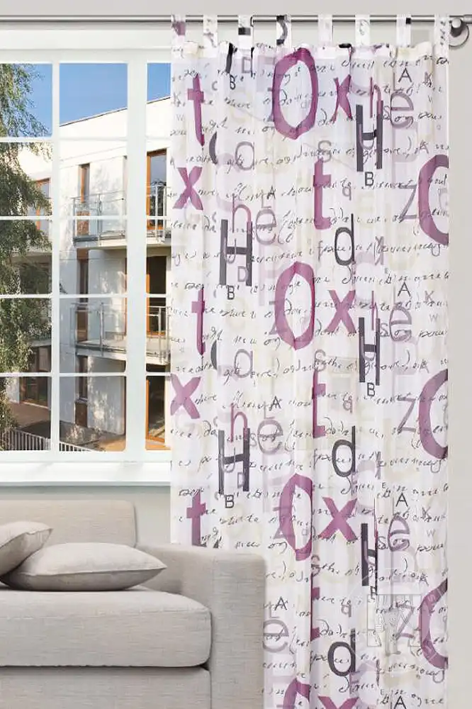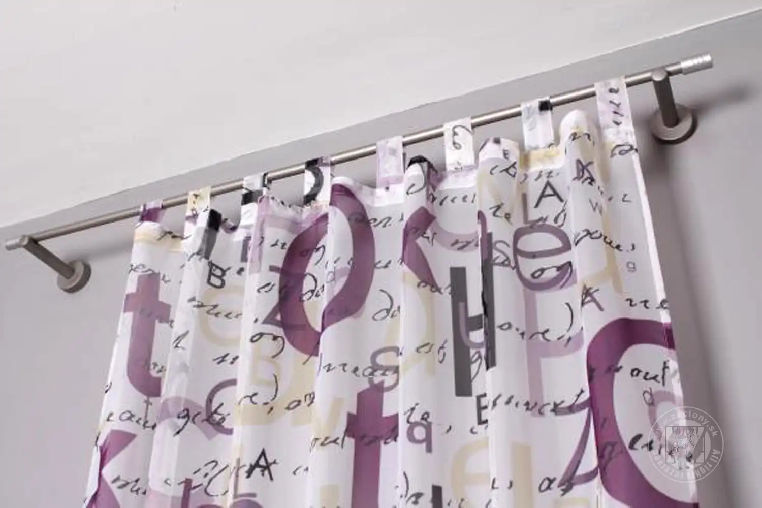 Krásny hotový záves, s modernou potlačou vo fialových tónoch.