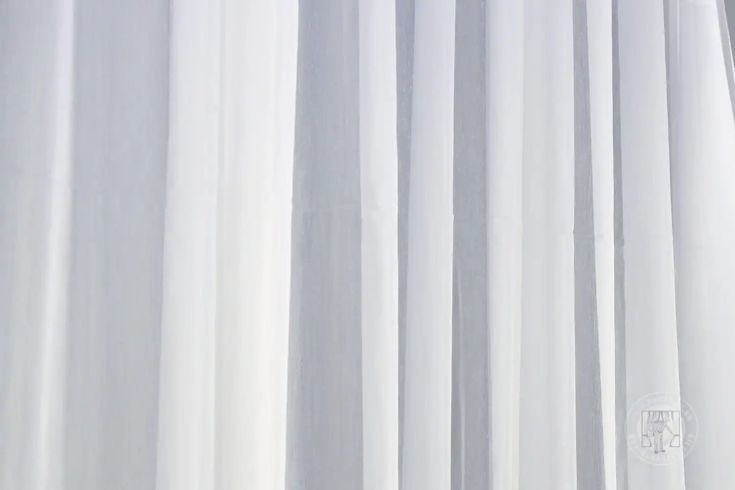 Moderná metrážna záclona, ktorá vyniká svojim ničím nerušiacim dizajnom. Záclona je vyrobená z materiálu Voál, pre ktorý je charakteristická jemnosť a ľahkosť. Spodná strana záclony je lemovaná olovkom, ktoré zabezpečuje vždy dokonalý padavý vzhľad záclony.