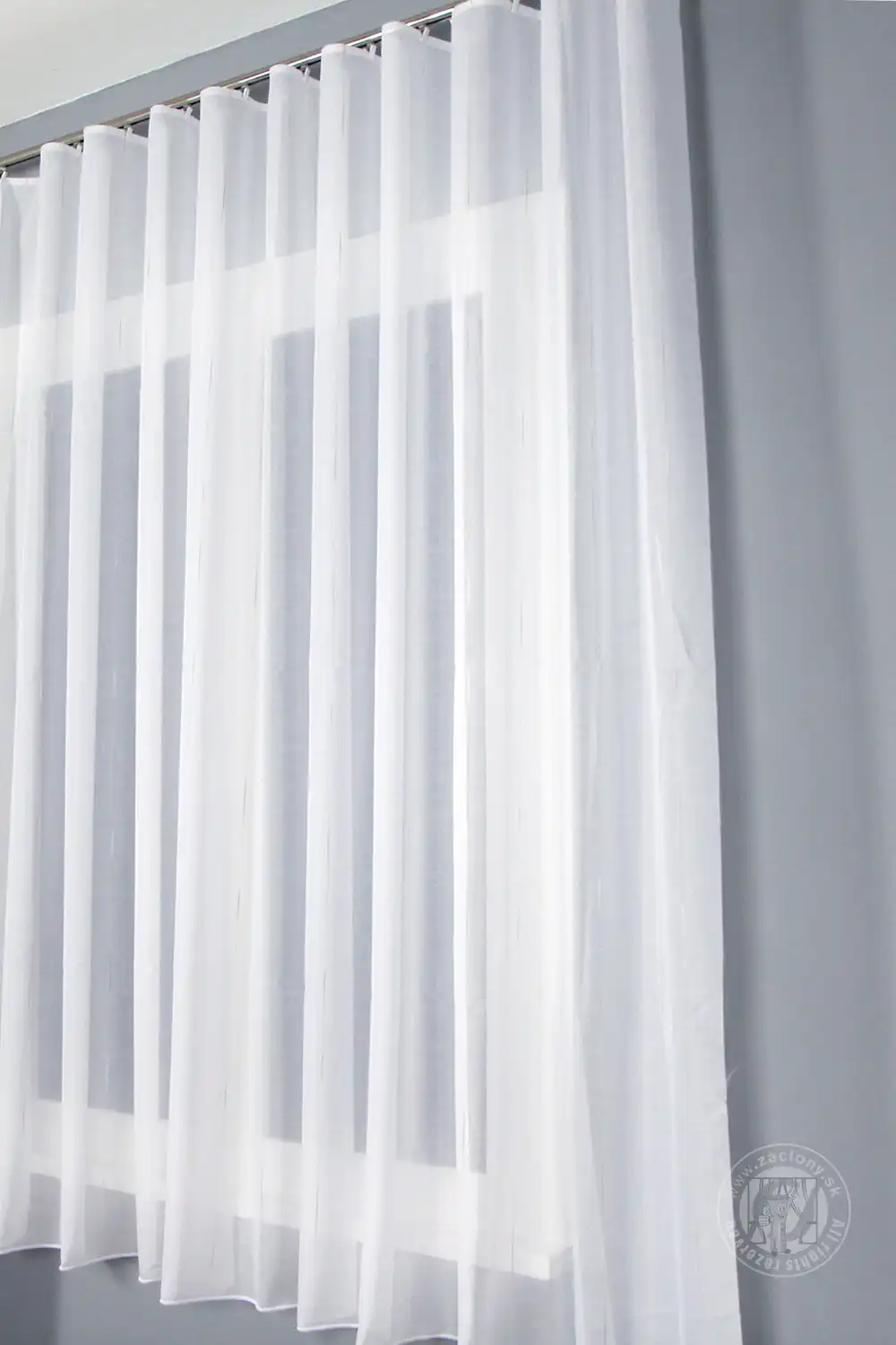 Moderná metrážna záclona, ktorá vyniká svojim pásikavým vzorom ťahajúcim sa pozdĺž celej záclony. Záclona je vyrobená z materiálu Voál, pre ktorý je charakteristická jemnosť a ľahkosť. Spodná strana záclony je lemovaná olovkom, ktoré zabezpečuje vždy dokonalý padavý vzhľad záclony.
