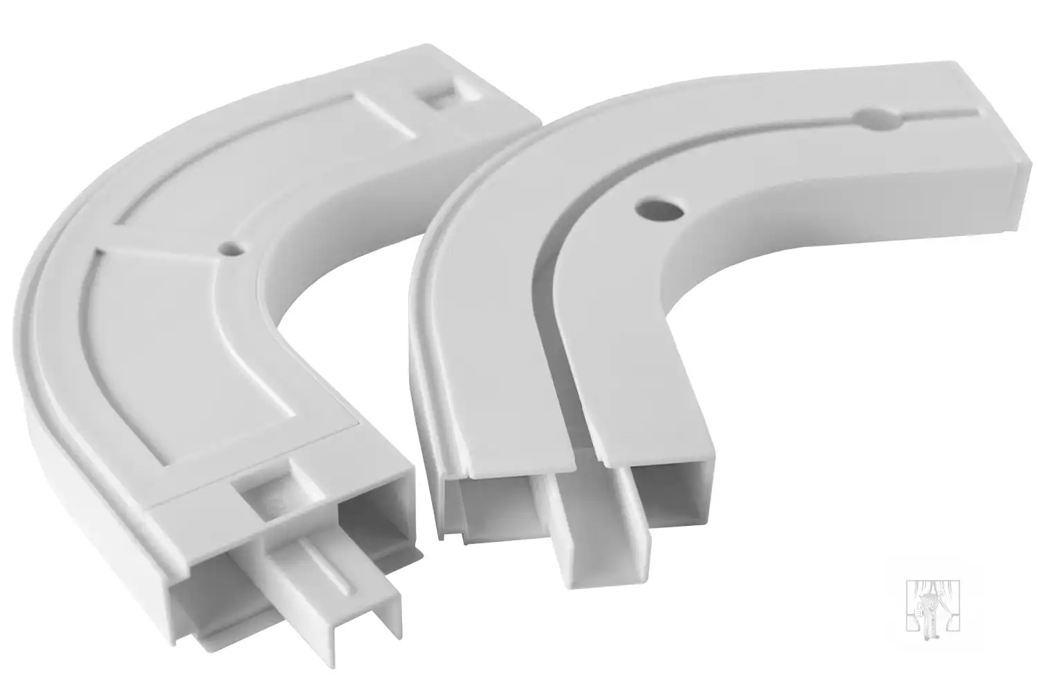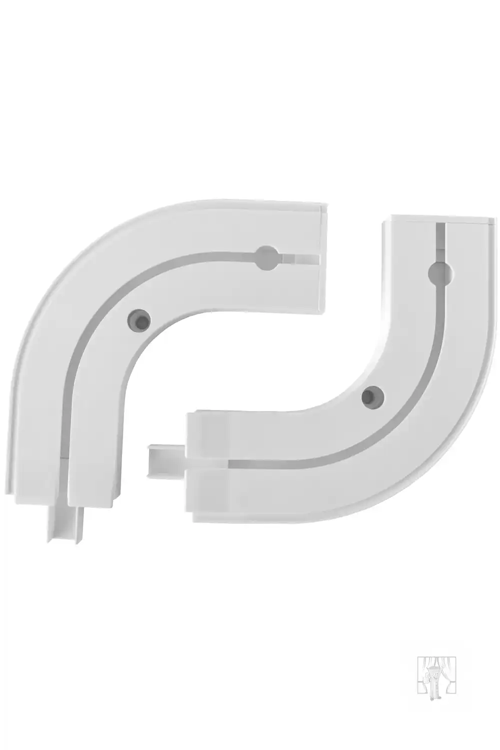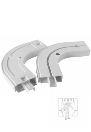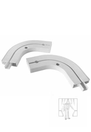 Vďaka praktickému koncovému oblúku z bieleho plastu sa Vaša stropná koľajnička prispôsobí ktorémukoľvek tvaru miestonsti. Oblúk je v uhle 90° a je vhodným doplnkom k 1-drážkovým plastovým koľajniciam. (návod na montáž nájdete vo fotogalérii)