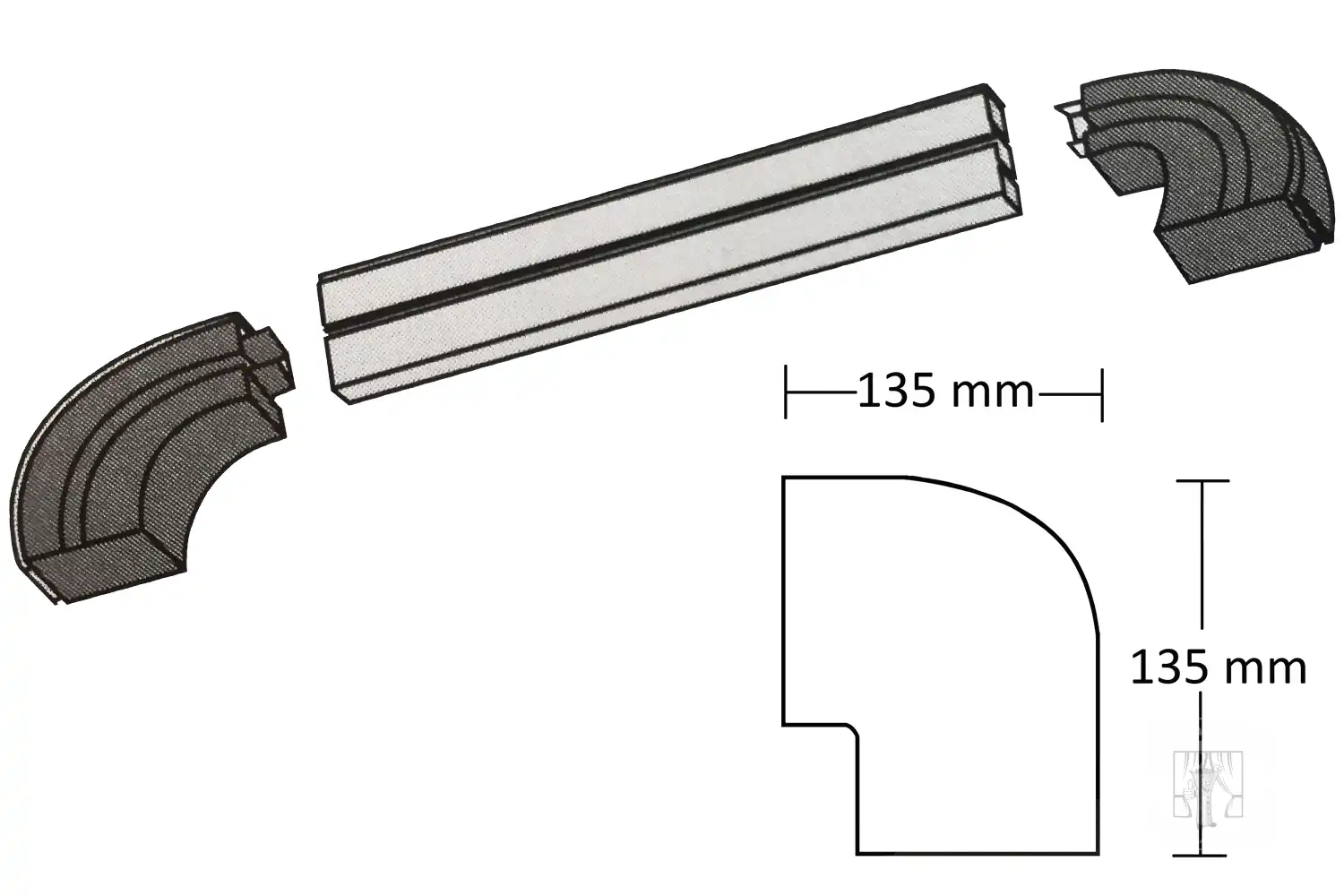 Vnútorný oblúk - Krycia lišta sa montuje na vnútornú stranu oblúka.