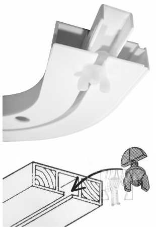 - Doraz je určený do bielej plastovej koľjnice. Pri potrebe dorazu do oblúka, použite iný produkt: Doraz do koľajničky/do oblúku.