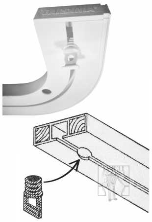- biele plastové dorazy do plastovej koľajnice a do koncových oblúkov proti vysunutiu háčikov (návod na montáž vo fotogelérii)