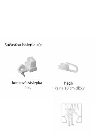 Súčasťou balenia sú háčiky (1 ks na 10 cm) a koncové záslepky (4 ks).