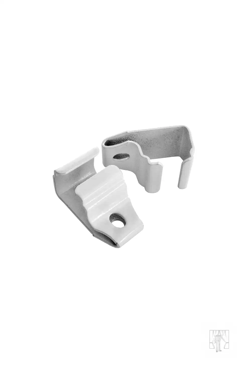 - biele hliníkové držiaky do stropu na U koľajnicu