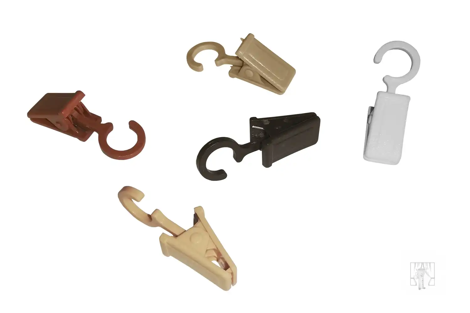 - plastové štipce k dreveným garnižiam pre uchytenie záclon či závesov