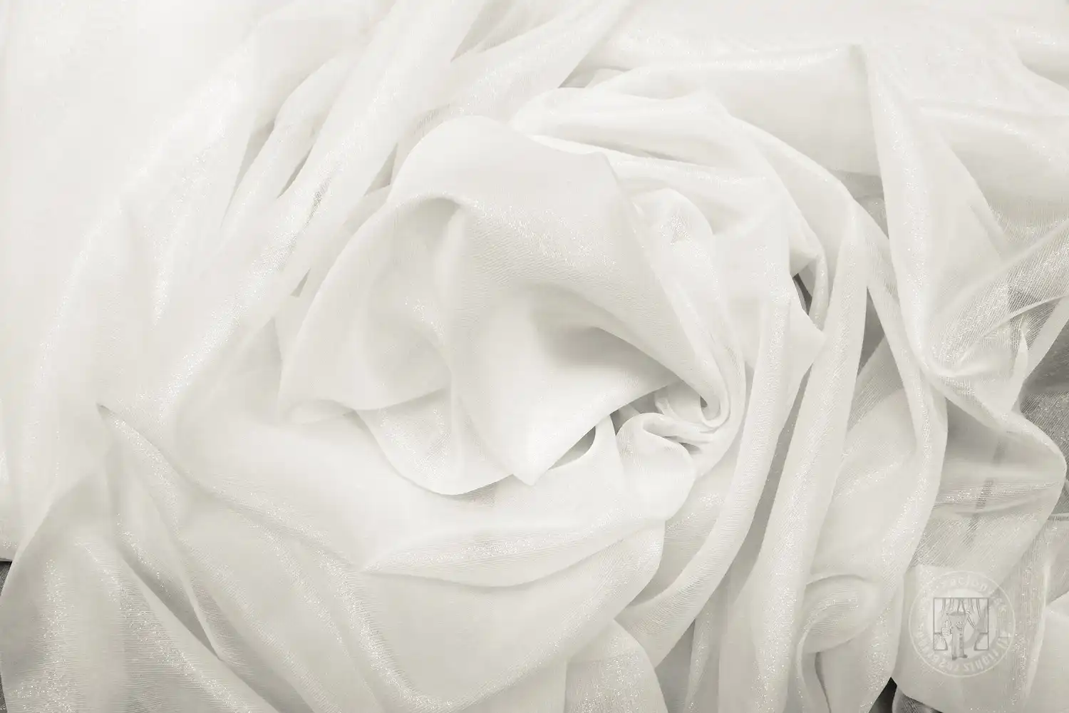 Moderná metrážna záclona, ktorá vyniká jemnými trblietkami po celom povrchu. Záclona je vyrobená z materiálu Voál, pre ktorý je charakteristická jemnosť a ľahkosť. Spodná strana záclony je lemovaná olovkom, ktoré zabezpečuje vždy dokonalý padavý vzhľad záclony.