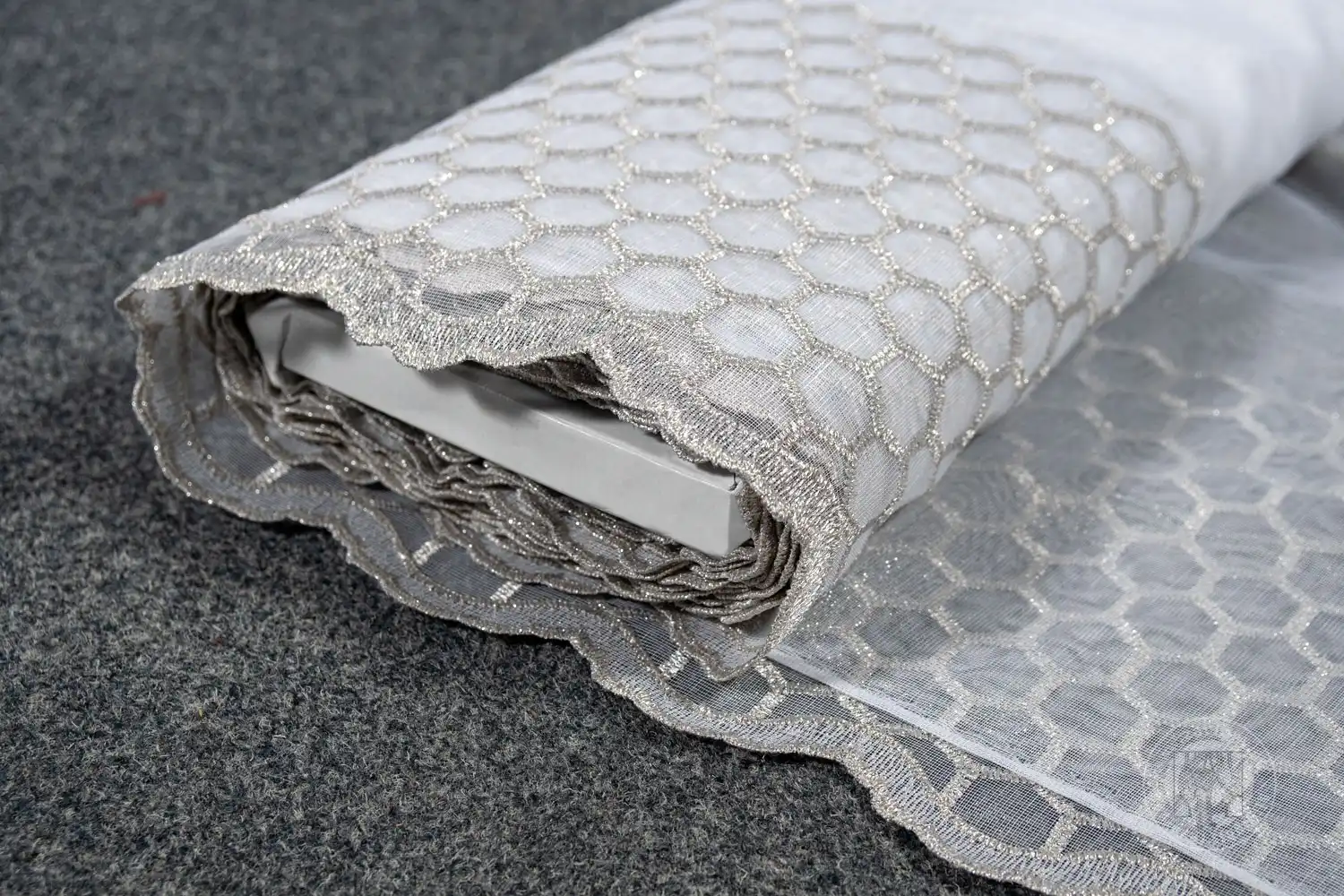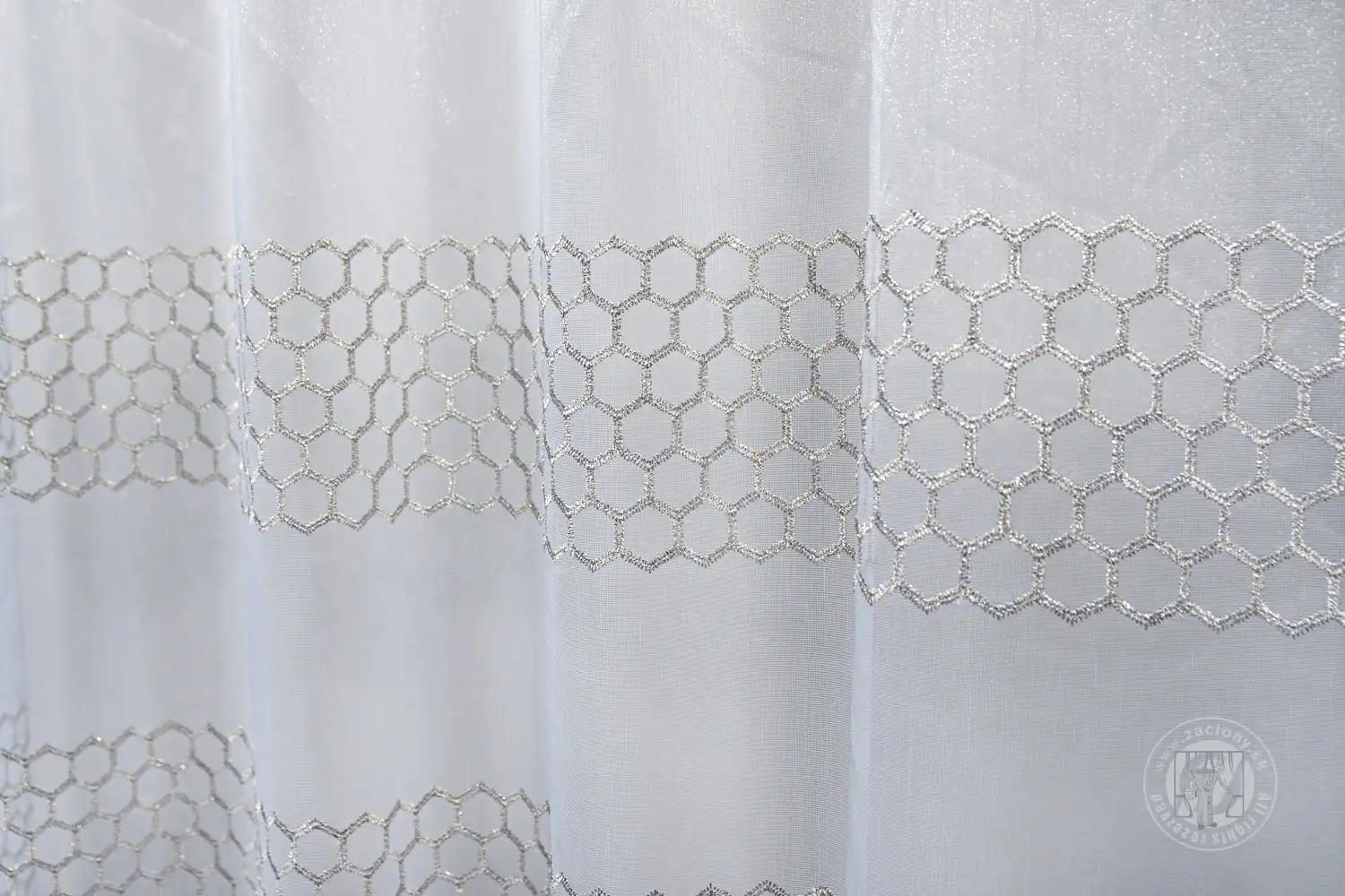 Moderná metrážna záclona, ktorá vyniká svojim geometrickým vzorom ťahajúcim sa pozdĺž celej záclony. Záclona je vyrobená z materiálu Voál, pre ktorý je charakteristická jemnosť a ľahkosť. Spodná strana záclony je lemovaná olovkom, ktoré zabezpečuje vždy dokonalý padavý vzhľad záclony.