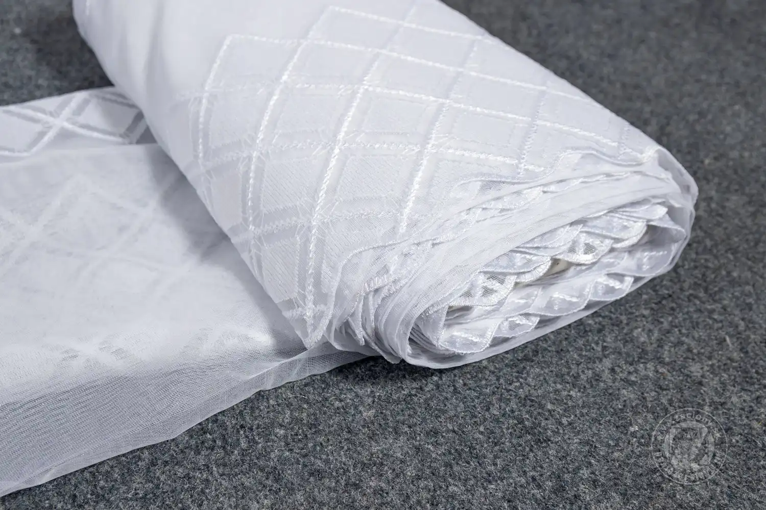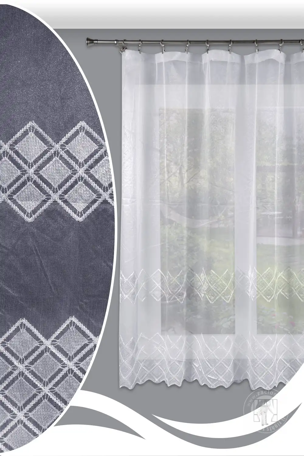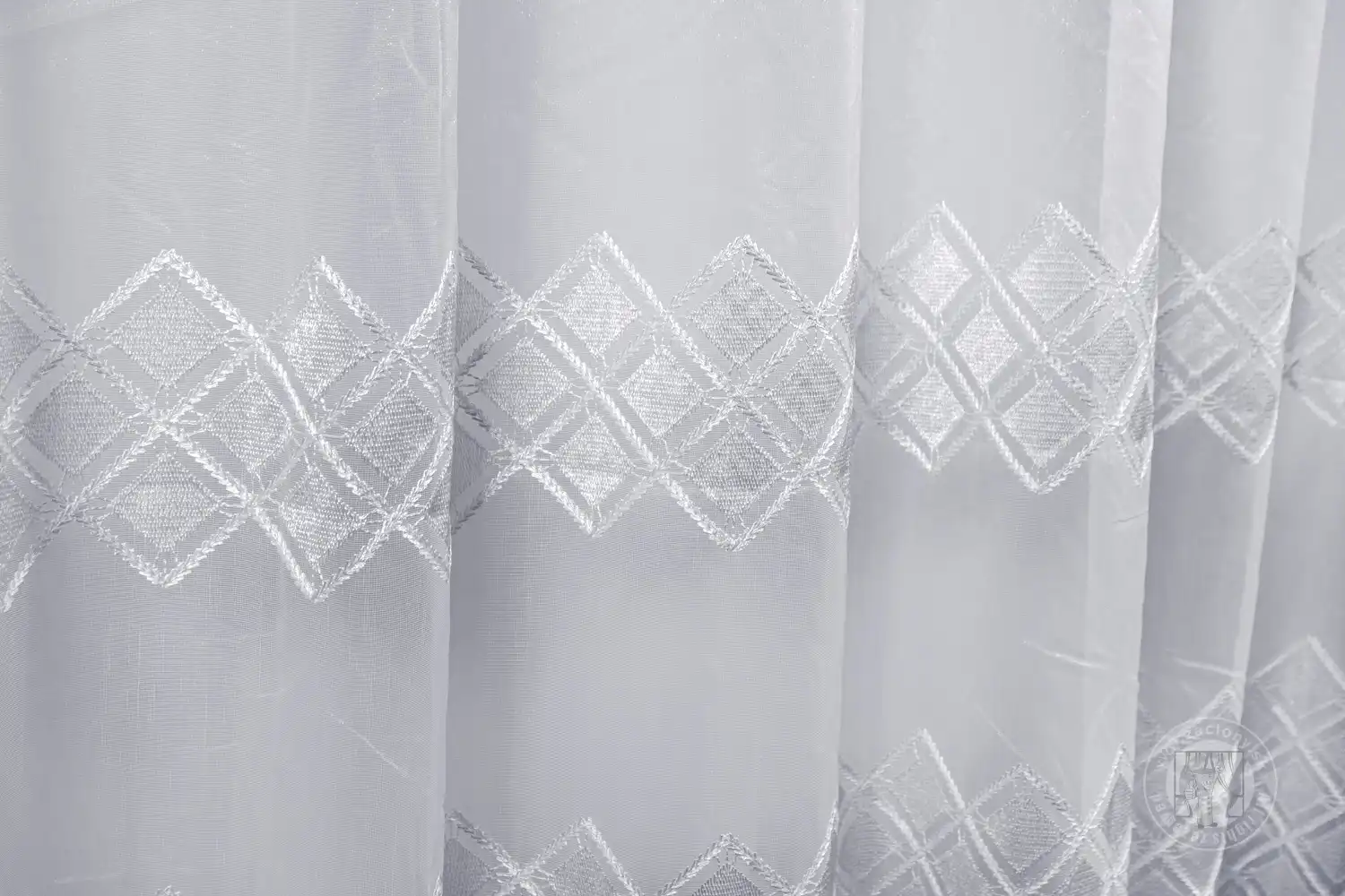 Moderná metrážna záclona, ktorá vyniká svojim geometrickým vzorom ťahajúcim sa pozdĺž celej záclony. Záclona je vyrobená z materiálu Voál, pre ktorý je charakteristická jemnosť a ľahkosť. Spodná strana záclony je lemovaná olovkom, ktoré zabezpečuje vždy dokonalý padavý vzhľad záclony.