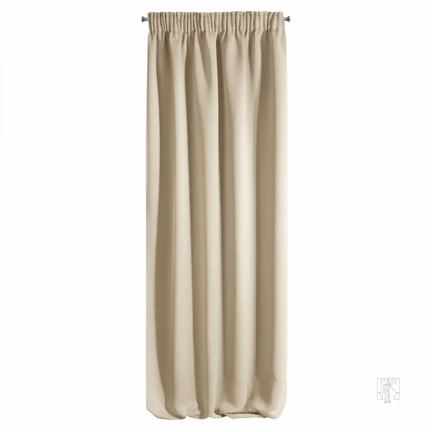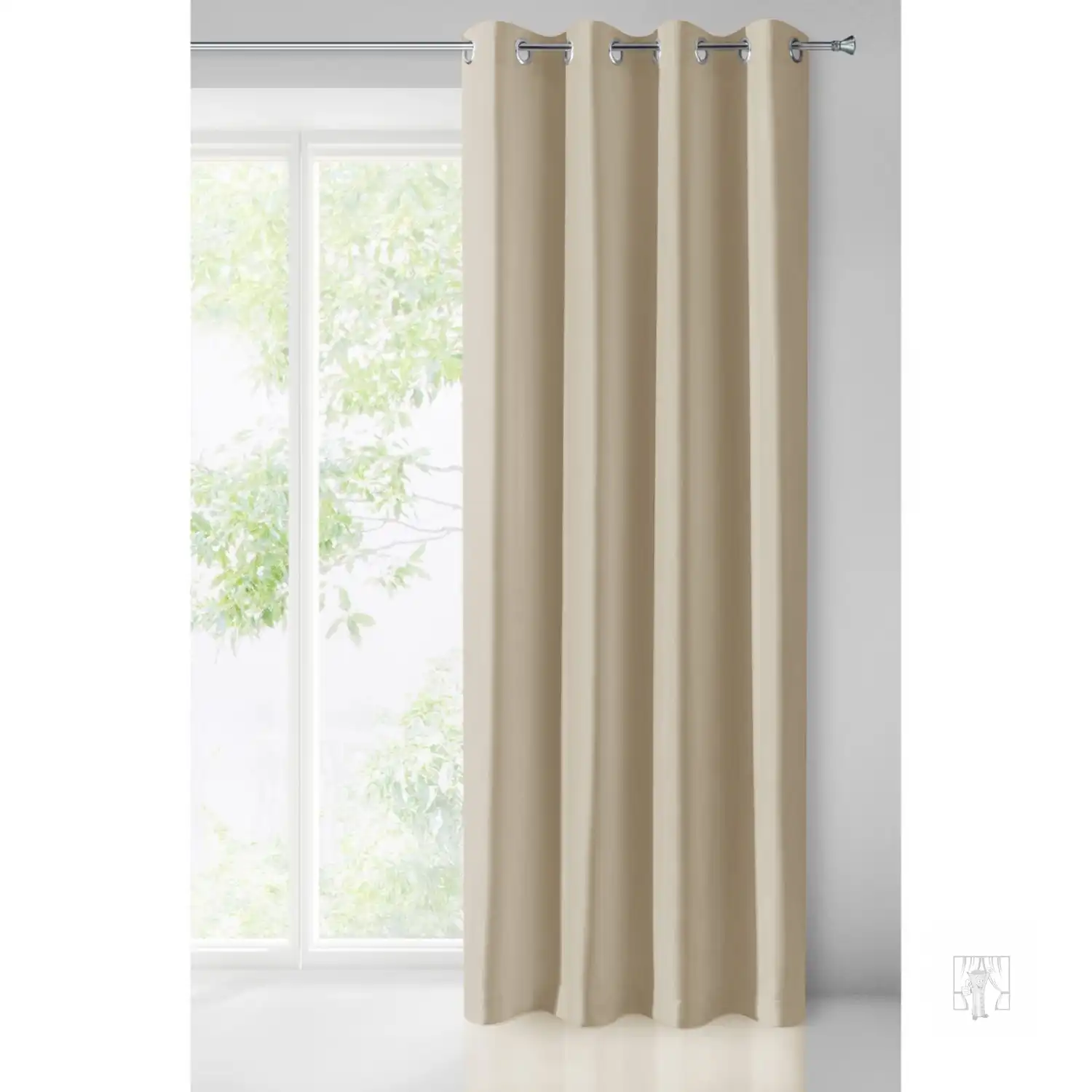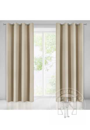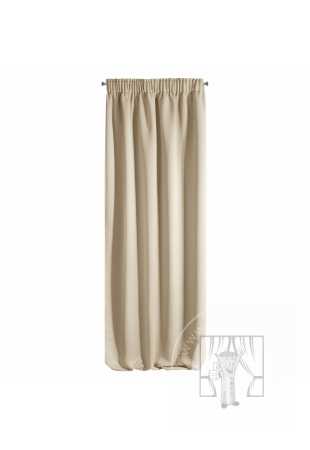 Závesy sú vyrobené z hladkej látky s jemným saténovým leskom, ktoré sa hodia do každého interiéru. Vnútorná vrstva látky je pretkaná čiernou niťou, vďaka čomu zatemňujú interiér až na 80%. Látka je obojstranná, preto je možné ju využiť aj na iných miestach ako sú okná.