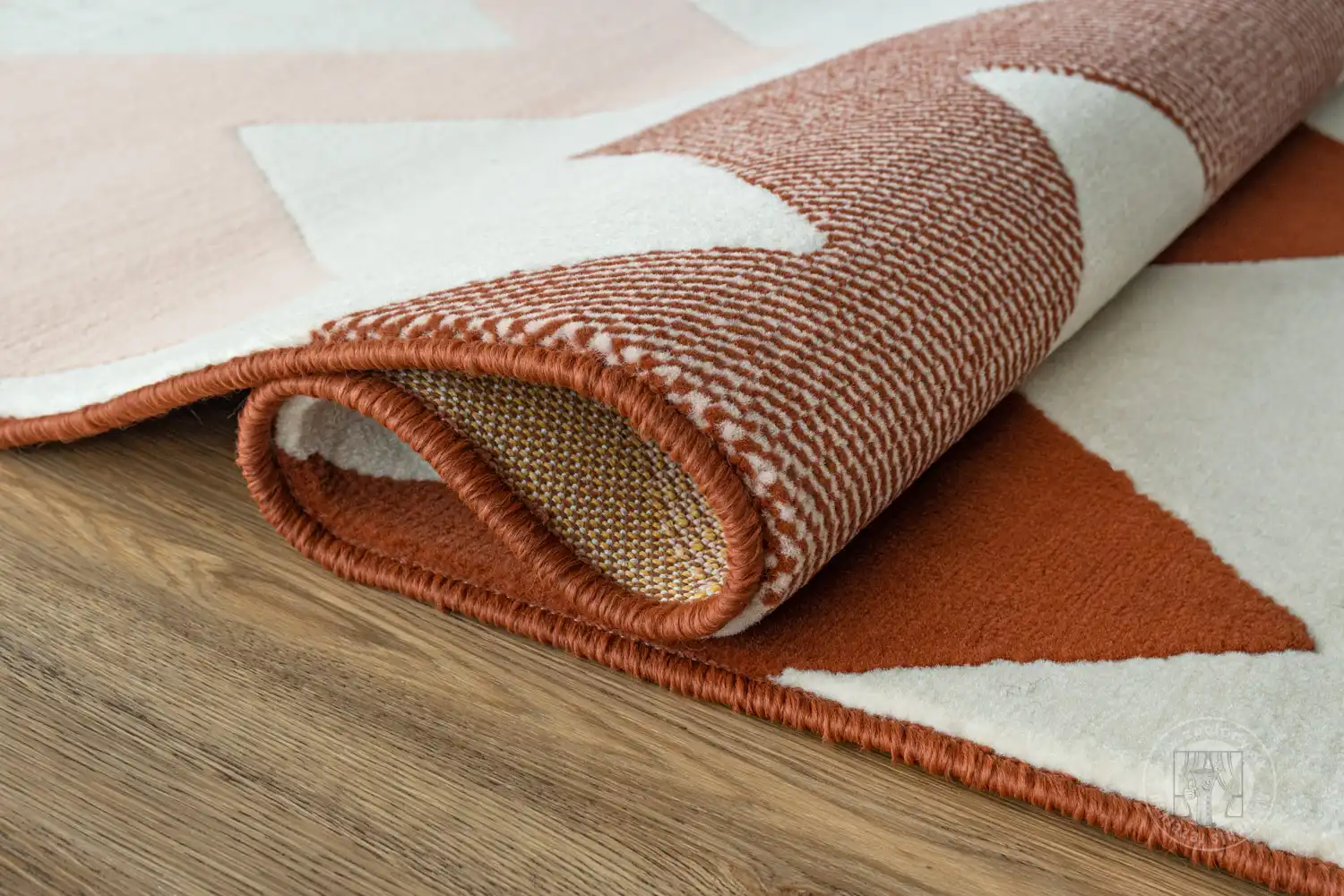 Moderný kusový koberec ladený v škandinávskom štýle. Kombinácia geometrických vzorov s pastelovými farbami ozvláštni každú domácnosť. Škandinávsky dizajn patrí k najobľúbenejším, lebo skvelo zapadne do každého interiéru, tradičného i moderného. Koberec je veľmi príjmený na dotyk, vyniká svojou mäkkosťou a ľahkosťou.