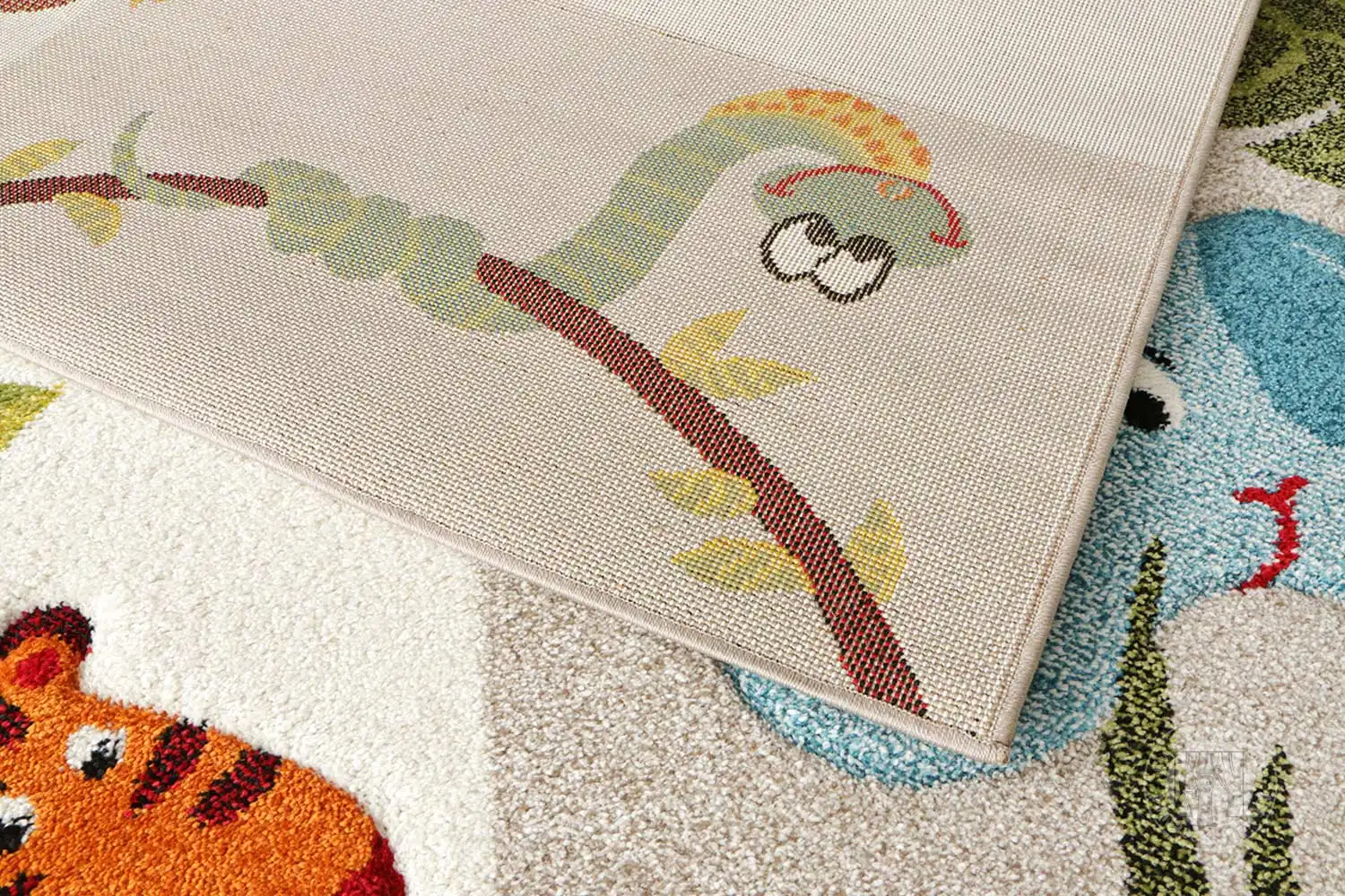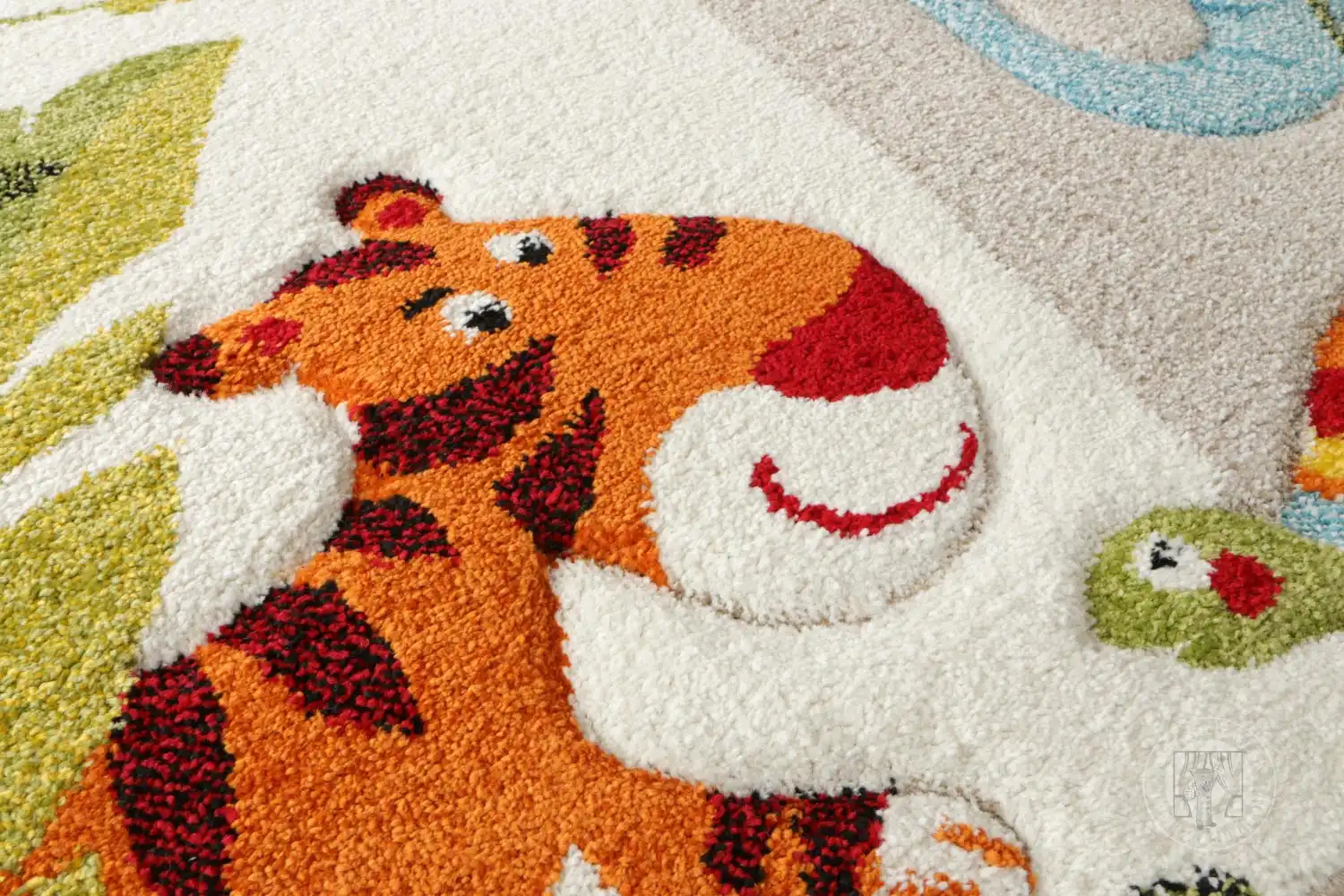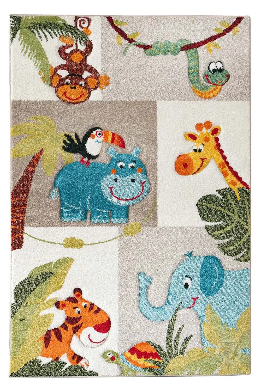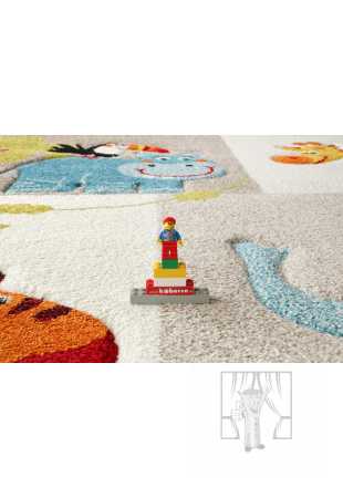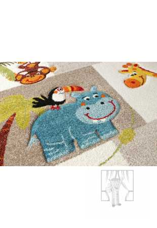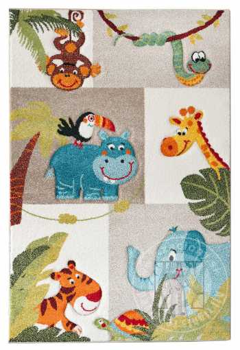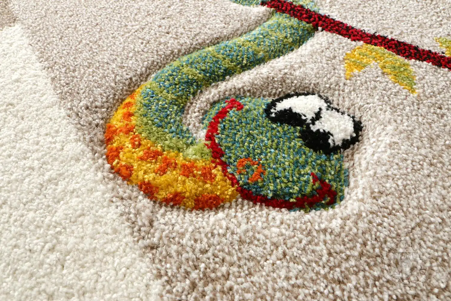 Detský koberec s motívom zvieratiek zaujme nielen pútavými vzormi, ale aj pestrými farbami, ktoré dokonale vyniknú na béžovom podklade. Koberec má hustý vlas s jemným leskom. Vzor koberca je zvýraznený reliéfnym 3D povrchom. Koberec je mäkký a príjemný na dotyk.
