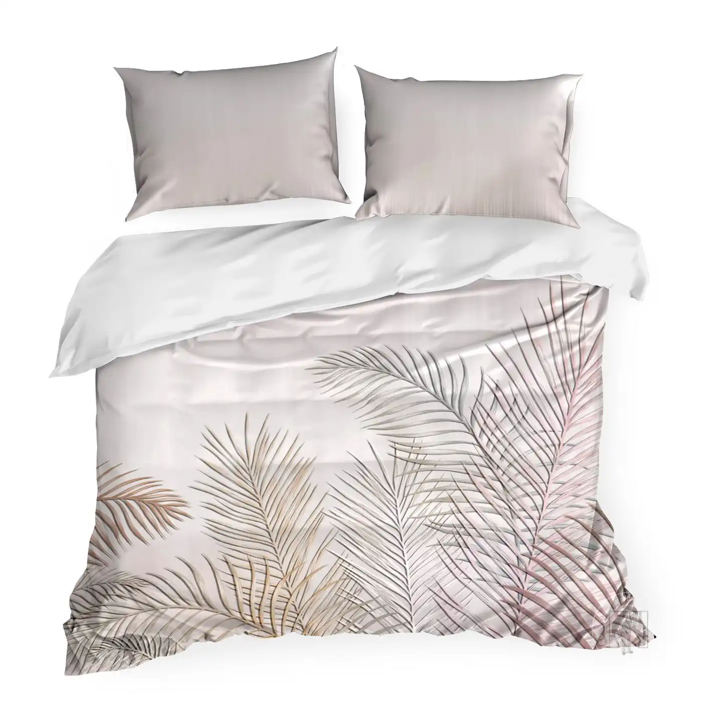 Posteľné obliečky REIN Sú vďaka prírodnému bavlnenému saténu na telo veľmi príjemné. Jednoduchý listový vzor na béžovom podklade doplní interiér.