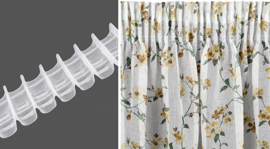 Pri každom metrážnom produkte je možnosť vybrať si typ a koeficient riasenia ako aj šírku samotnej riasiacej pásky.