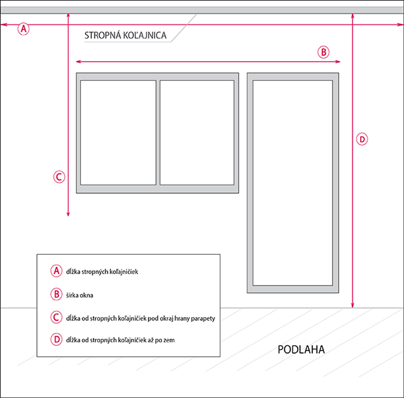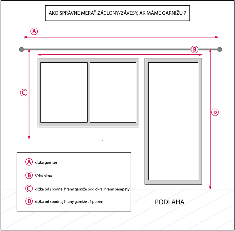 ➡️ šírka okna alebo šírka garniže / koľajnice (rozmer A) × 2 + 10 cm