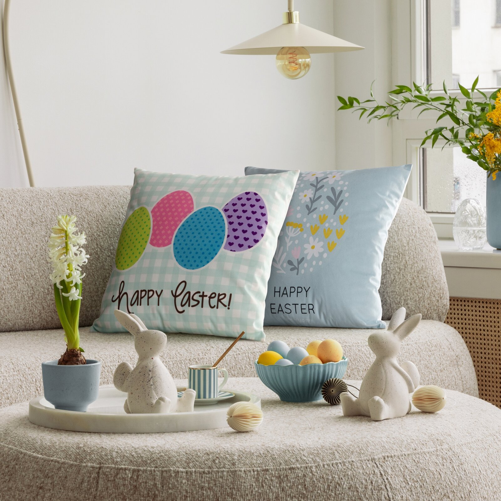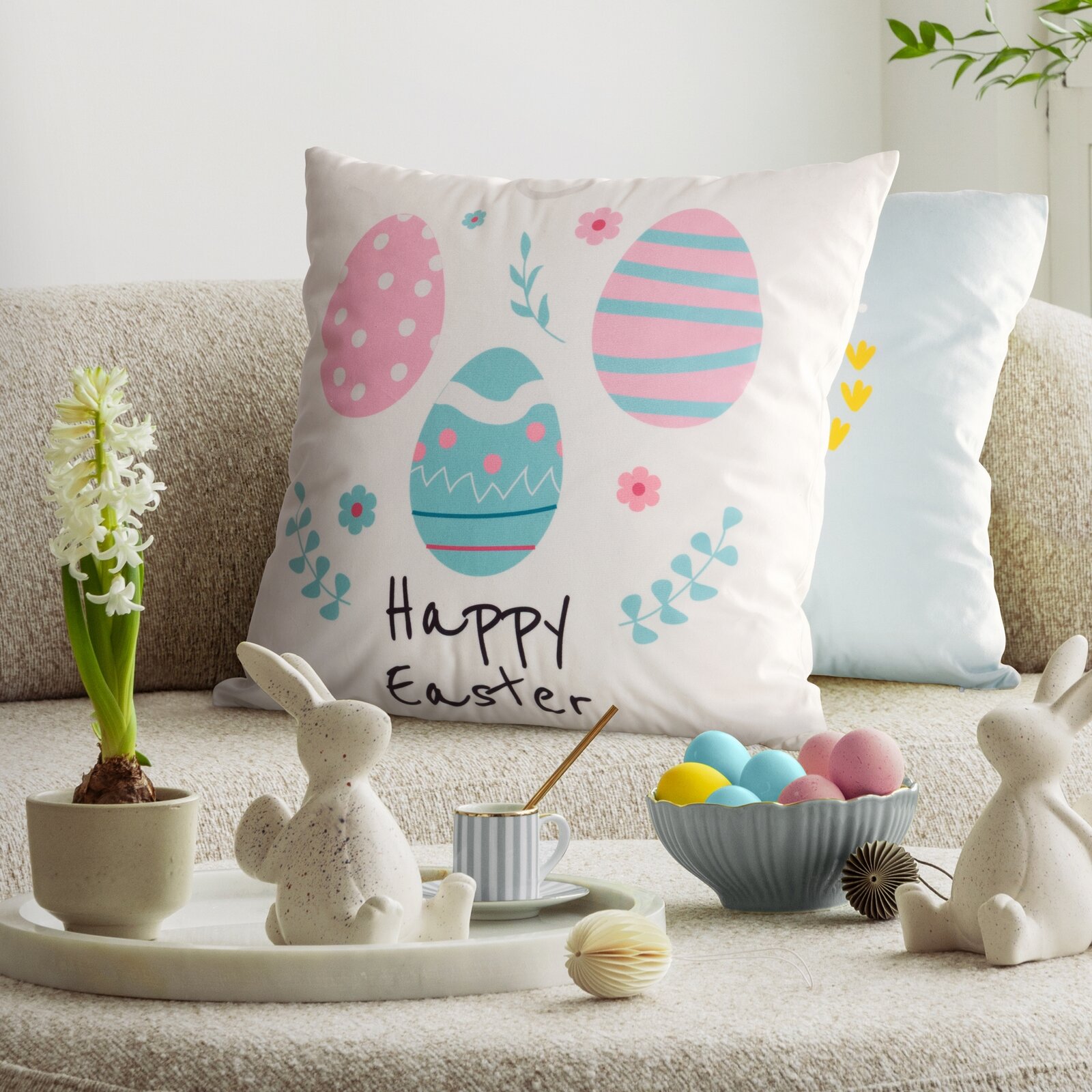 Veľkonočné obliečky na vankúš premenia sedačku, posteľ aj kreslo na svieži jarný kútik so sviatočnou atmosférou. Dekoračné obliečky doladia interiér počas veľkonočného obdobia, zútulnia obývačku a dodajú domovu veselý, upravený vzhľad. Praktické zapínanie uľahčuje výmenu obliečok podľa sezóny, takže po sviatkoch stačí vymeniť textílie a interiér získa nový charakter. Obliečka na vankúš chráni výplň pred znečistením, predlžuje jej životnosť a zároveň je dôležitým prvkom veľkonočnej výzdoby.
