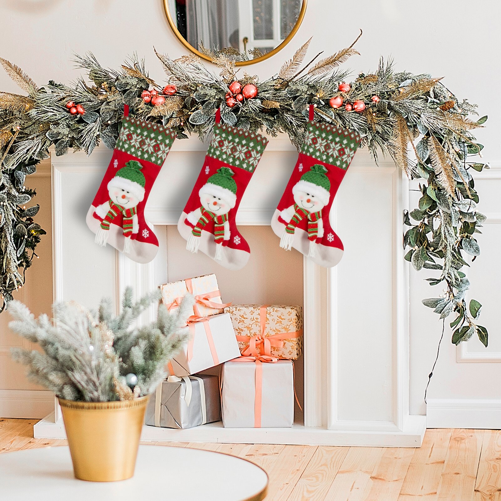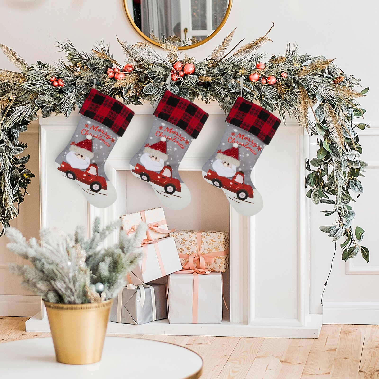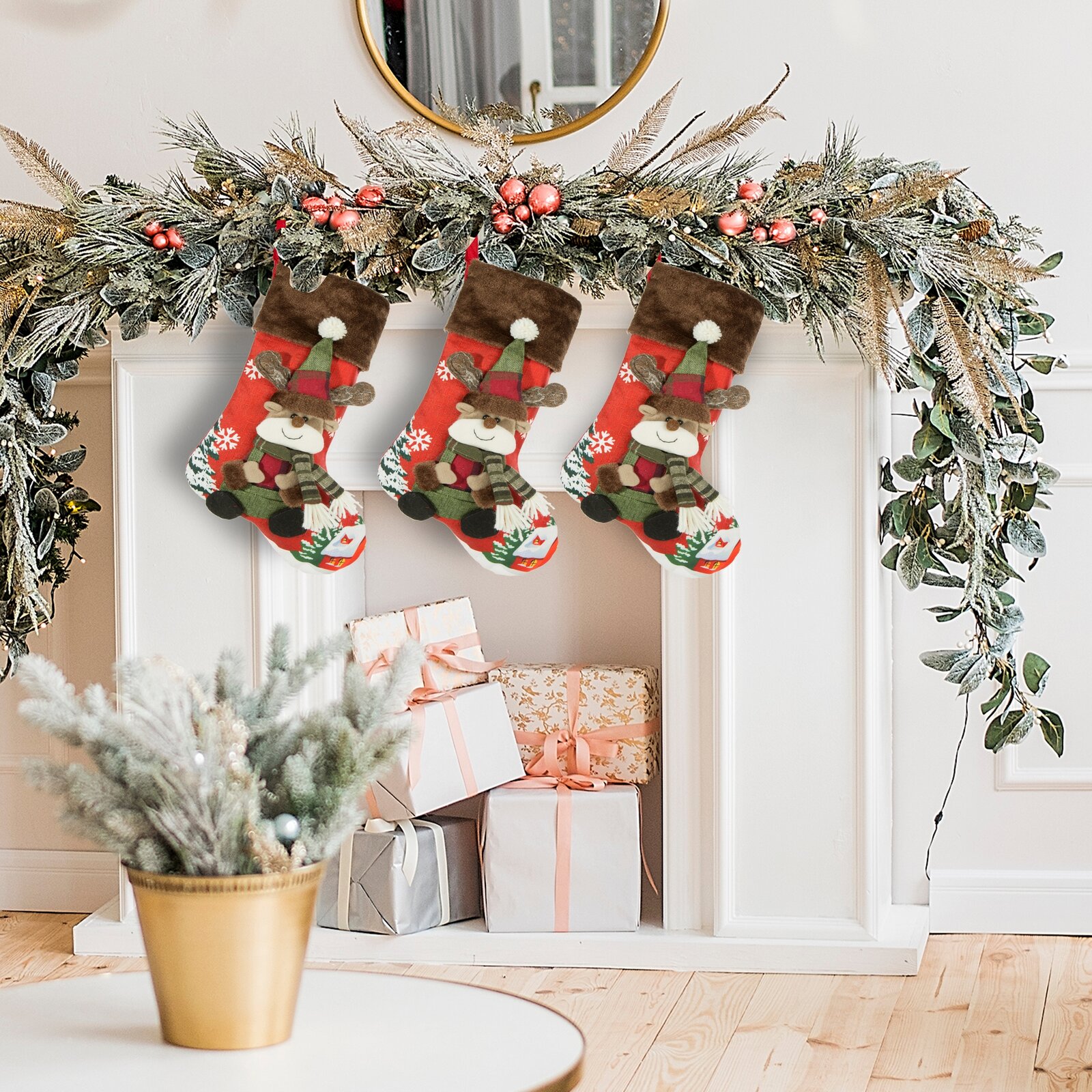 Vianočné ponožky na krb (pančuchy) pre útulnú sviatočnú výzdobu. Vyberte si veľké vianočné ponožky na zavesenie nad krb, na schody či poličku — bavlna, plsť, zamat aj pletené varianty. Obľúbené motívy: sob, Santa, snehové vločky, nórsky vzor, aj minimalistické jednofarebné. Slučka/háčik na jednoduché zavesenie, dostatok miesta na sladkosti a drobné darčeky.