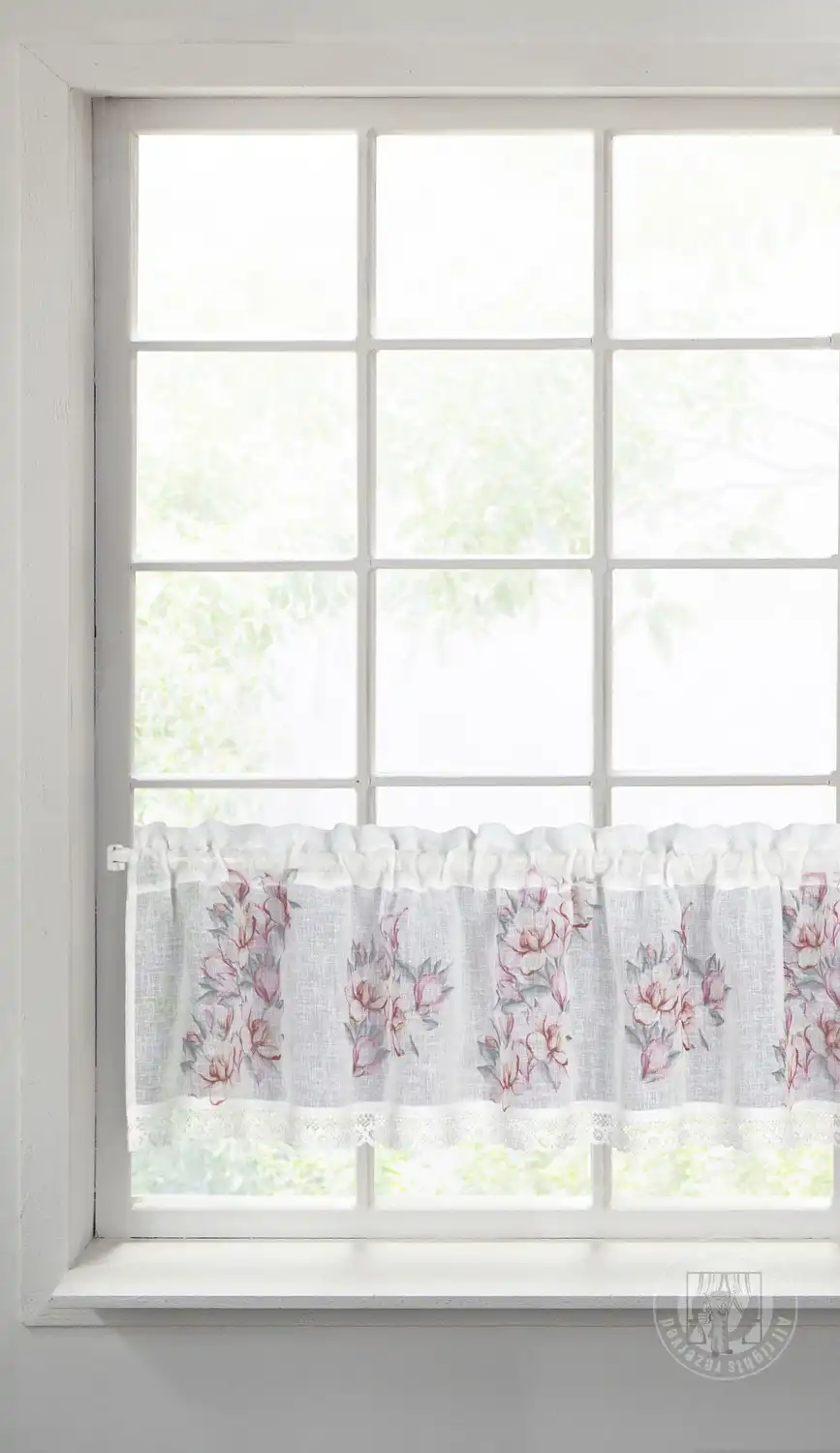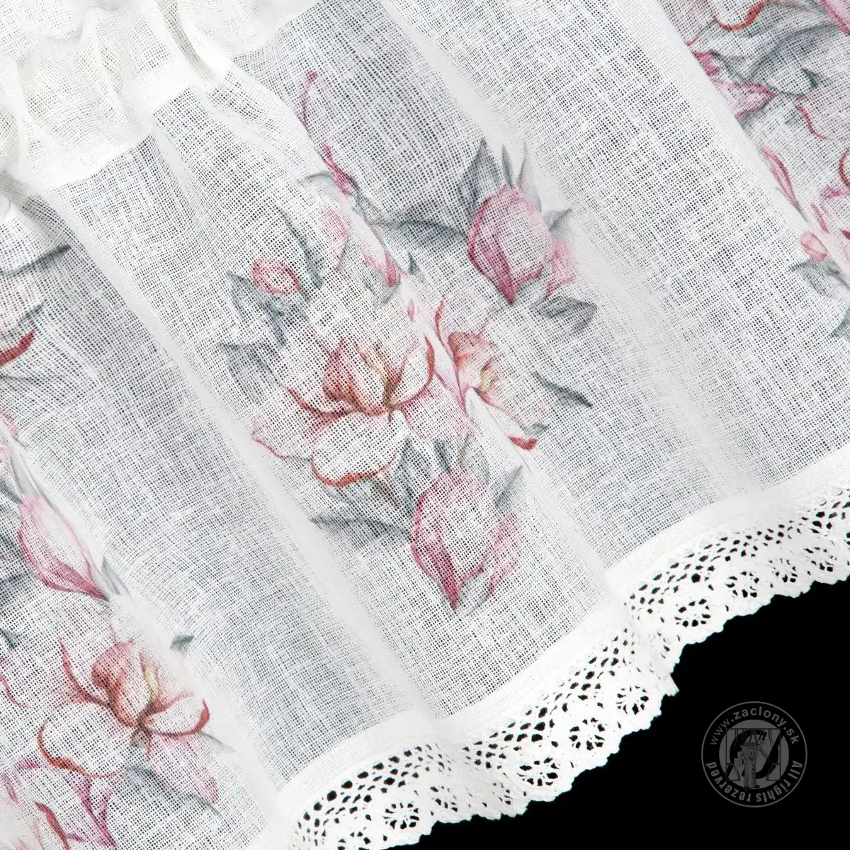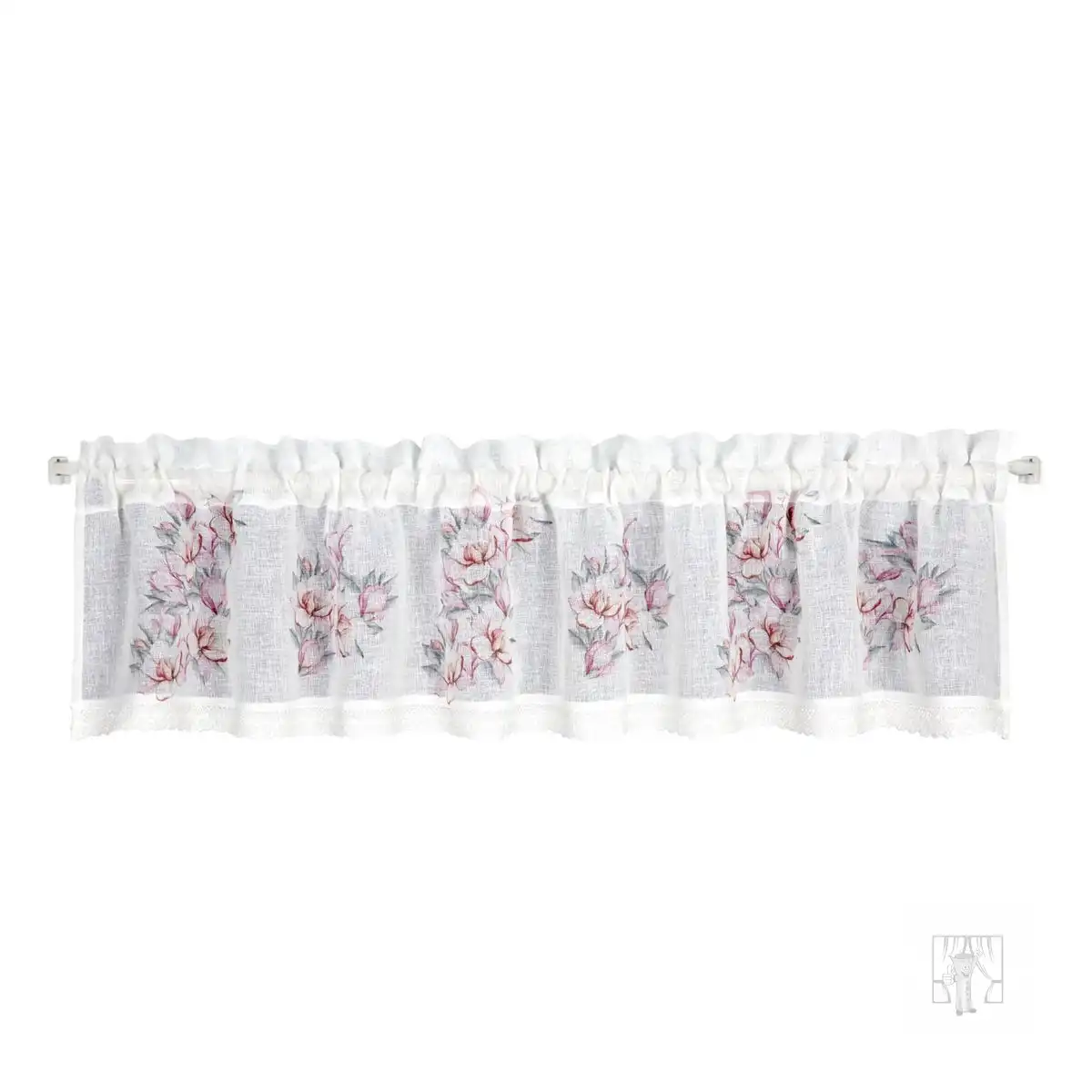 Doplnky v rustikálnom štýle dodajú vášmu interiéru domácu a útulnú atmosféru. Presne takú atmosféru vytvoria vo vašej kuchyni tieto malé záclony zdobené bavlnenou čipkou a potlačené ružovými kvetmi. Táto malá záclona v snehovo bielej farbe je vyrobený z husto tkaného etamínu a poskytne vašej kuchyni súkromie, prirodzené svetlo a jedinečnú atmosféru. Tunel v hornom okraji záclony uľahčuje jej pretiahnutie cez záclonovú tyč.
