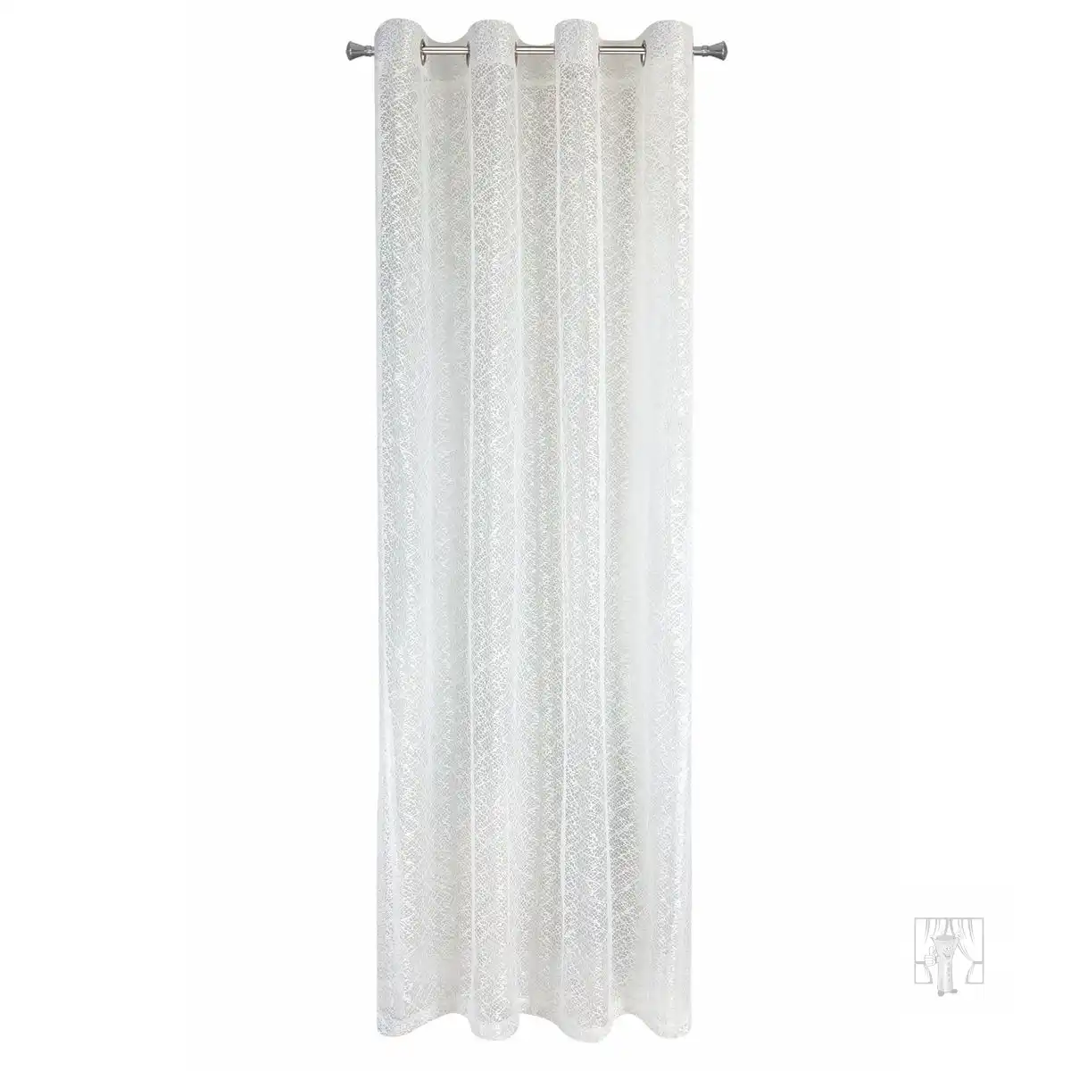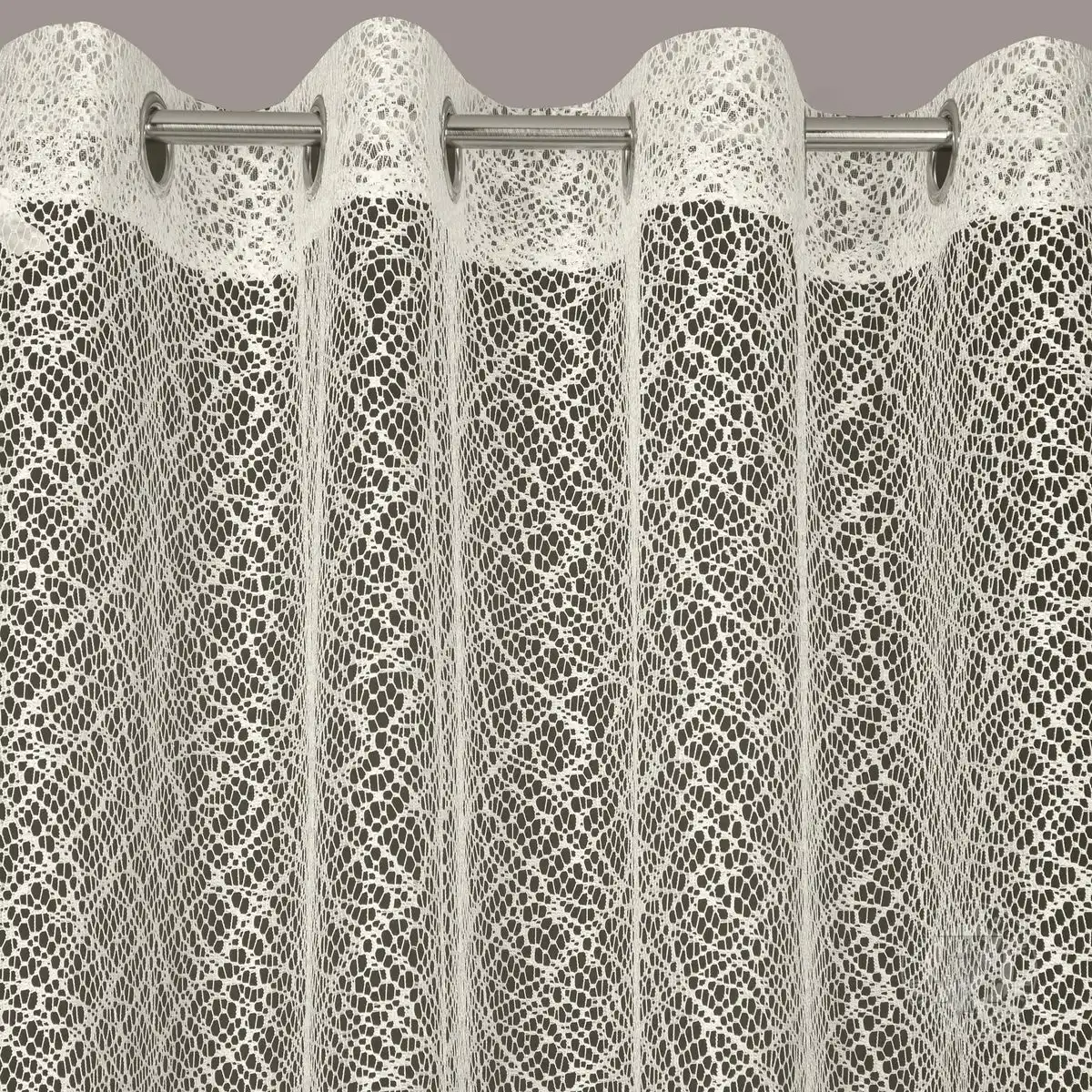 Výrazná hotová záclona AMANDA v krémovej farbe, vyrobená z látky s pavučinovou textúrou, dokonale doplní moderný interiérový dizajn. Je pripravená na zavesenie pomocou praktických očiek a po pripevnení na tyč vytvára jemný, pravidelný záhyb. Dokonale doplní moderný aj klasický interiér. Štruktúra záclony nezatieňuje miestnosť a poskytuje dostatok prirodzeného svetla.