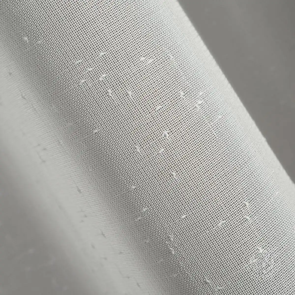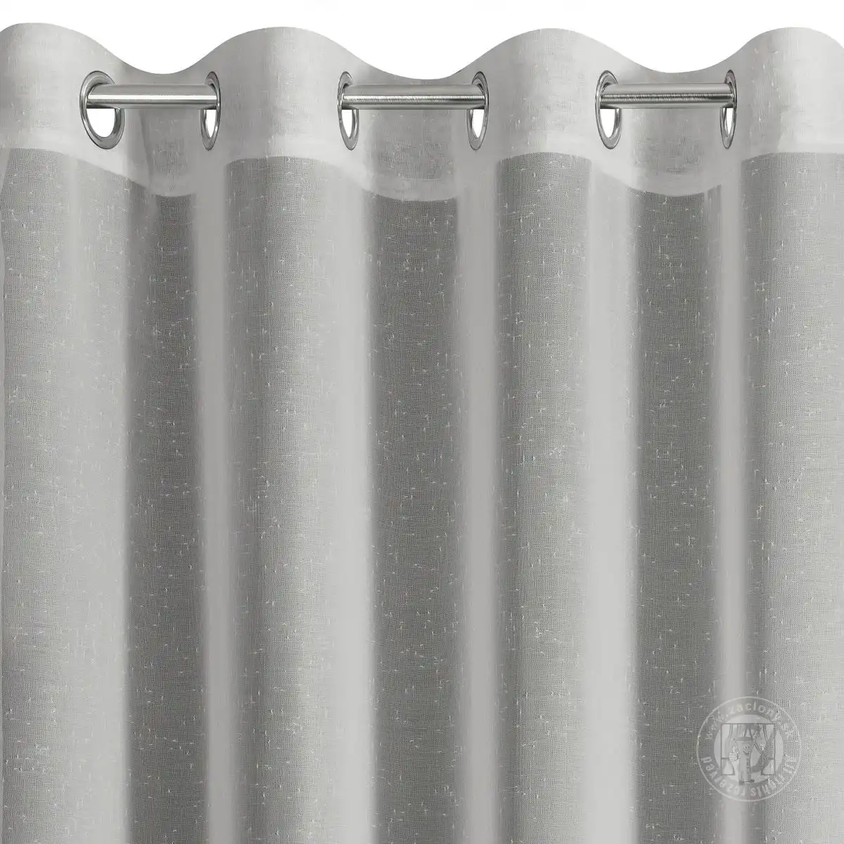 Ak hľadáte jednoduché, prirodzené a výrazné dekorácie okien, odporúčame vám jednoduché a pôvabné záclony ušité z polopriehľadnej matnej látky s prírodnou väzbou a dúhovým efektom. Táto dekorácia je kombináciou ležérnej slobody a mestskej elegancie. Záclona je v hornej časti opatrená praktickými očkami, ktoré umožňujú zmenu dekorácie v krátkom okamihu a po zavesení vytvárajú jemné, mäkké vlny. Univerzálna tkanina umožňuje prispôsobiť záclonu interiérom rôznych štýlov - bude sa hodiť do klasických, ekologických, škandinávskych, romantických alebo rustikálnych interiérov. Záclona v sivom odtieni elegantne a prirodzene zdobí okno a vďaka jeho hustej štruktúre a tmavšej farbe je interiér jemne chránený pred nadmerným slnečným žiarením, preto ho odporúčame najmä do výrazne preslnených miestností.