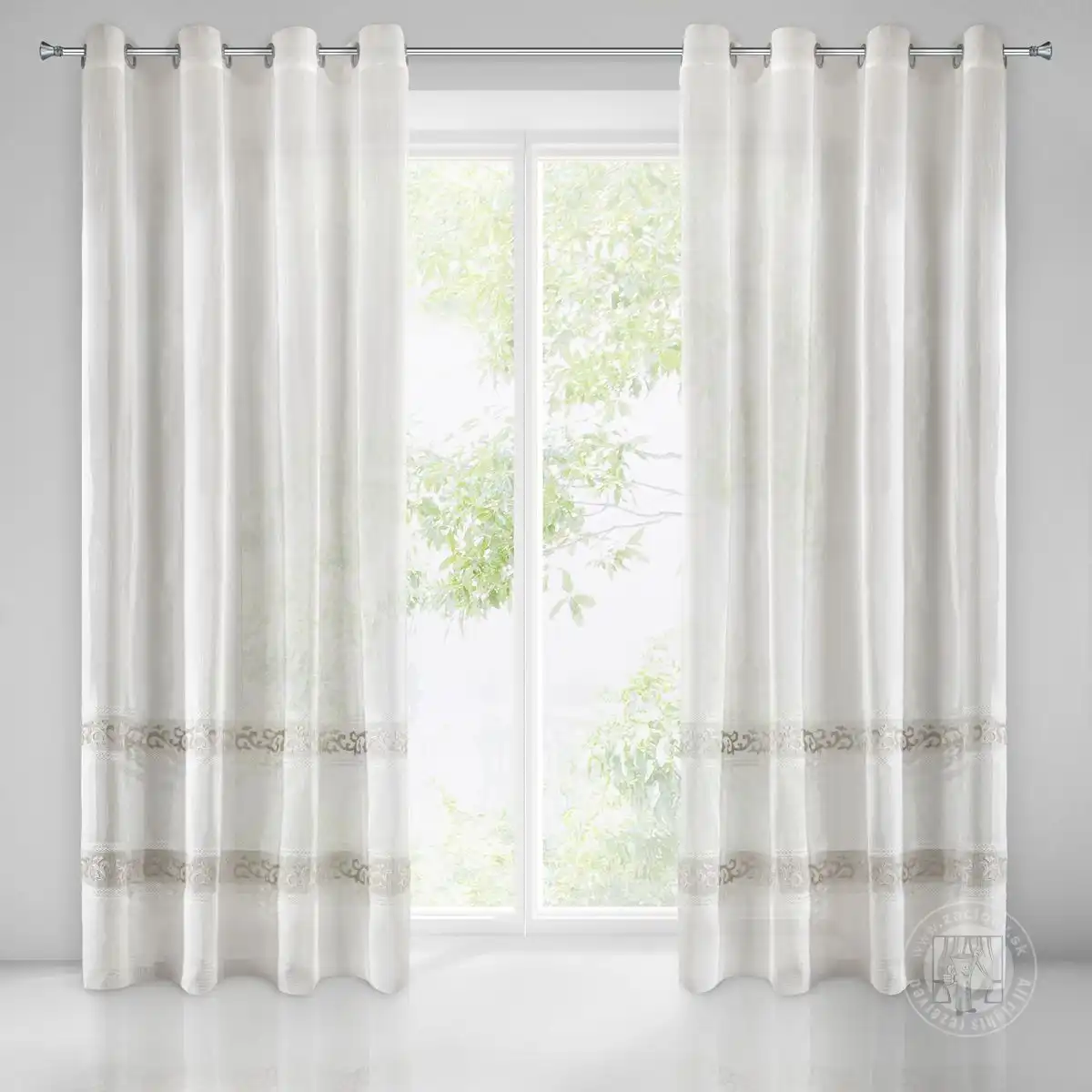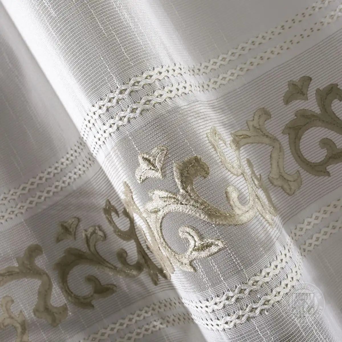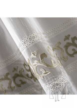 Elegantný interiér si vyžaduje správne zvolené príslušenstvo. Objavte našu novinku - fenomenálnu záclonu ANNE, ktorú v spodnej časti zdobia dva pásy vzoru obklopené jemným žoržetom. V drapérii ANNE bol motív kvetinového ornamentu zo zamatovej látky zvýraznený výšivkou s trblietavou niťou a našitý na hladkej, polopriehľadnej látke. To vytvára efekt ľahkej a vzdušnej záclony zdobenej fenomenálnym vzorom. Záclonu možno ľahko upevniť na ozdobné krúžky, ktoré látku usporiadajú do mäkkých a rovnomerných záhybov. Záclona je ideálna ako dekorácia do klasickej obývačky, ale môžete ju použiť aj v minimalistickom interiéri. Zladením záclony s mäkkými zamatovými závesmi získate štýlovú a originálnu dekoráciu.