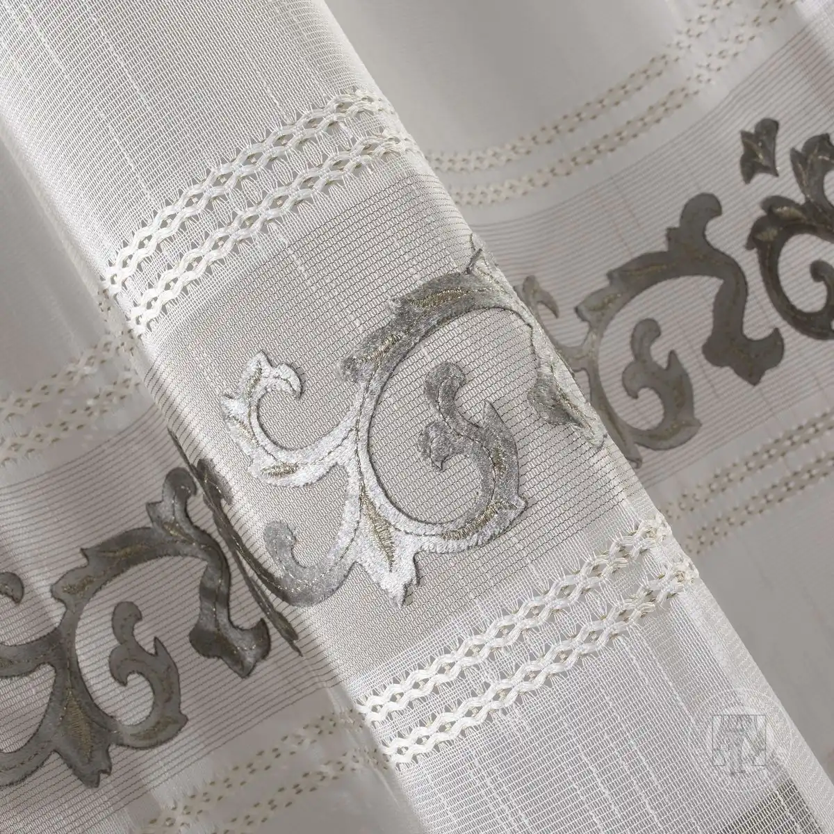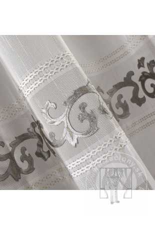 Elegantný interiér si vyžaduje správne zvolené príslušenstvo. Objavte našu novinku - fenomenálnu záclonu ANNE, ktorú v spodnej časti zdobia dva pásy vzoru obklopené jemným žoržetom. V drapérii ANNE bol motív kvetinového ornamentu zo zamatovej látky zvýraznený výšivkou s trblietavou niťou a našitý na hladkej, polopriehľadnej látke. To vytvára efekt ľahkej a vzdušnej záclony zdobenej fenomenálnym vzorom. Záclonu možno ľahko upevniť na ozdobné krúžky, ktoré látku usporiadajú do mäkkých a rovnomerných záhybov. Záclona je ideálna ako dekorácia do klasickej obývačky, ale môžete ju použiť aj v minimalistickom interiéri. Zladením záclony s mäkkými zamatovými závesmi získate štýlovú a originálnu dekoráciu.