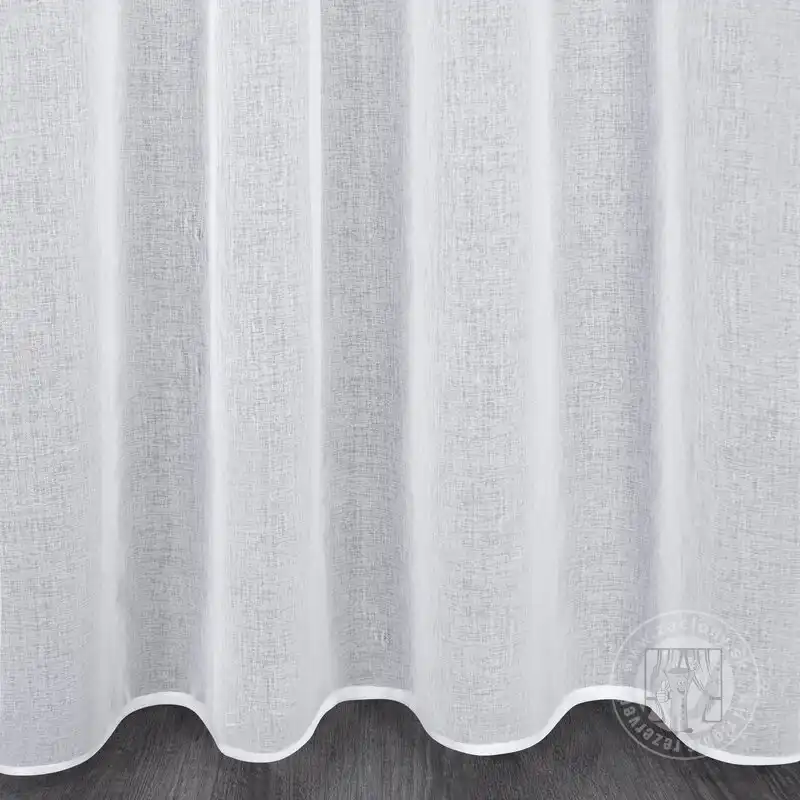 Jednoduchá a pôvabná záclona bielej farby je ušitá z priehľadného a vzdušného matného etamínu, ktorá veľmi prirodzene zdobí okno. Táto dekorácia spája ležérnosť s mestskou eleganciou. Je ideálna pre anglický alebo provensálsky štýl, ako aj pre detské alebo mládežnícke izby.