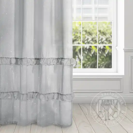 Záves ARIANA je vyrobený z neobvyklej látky s originálnou lesklou textúrou s množstvom drobných, lesklých chĺpkov na hustej sieťovine, ktorá vytvára neobvyklý vizuálny efekt.