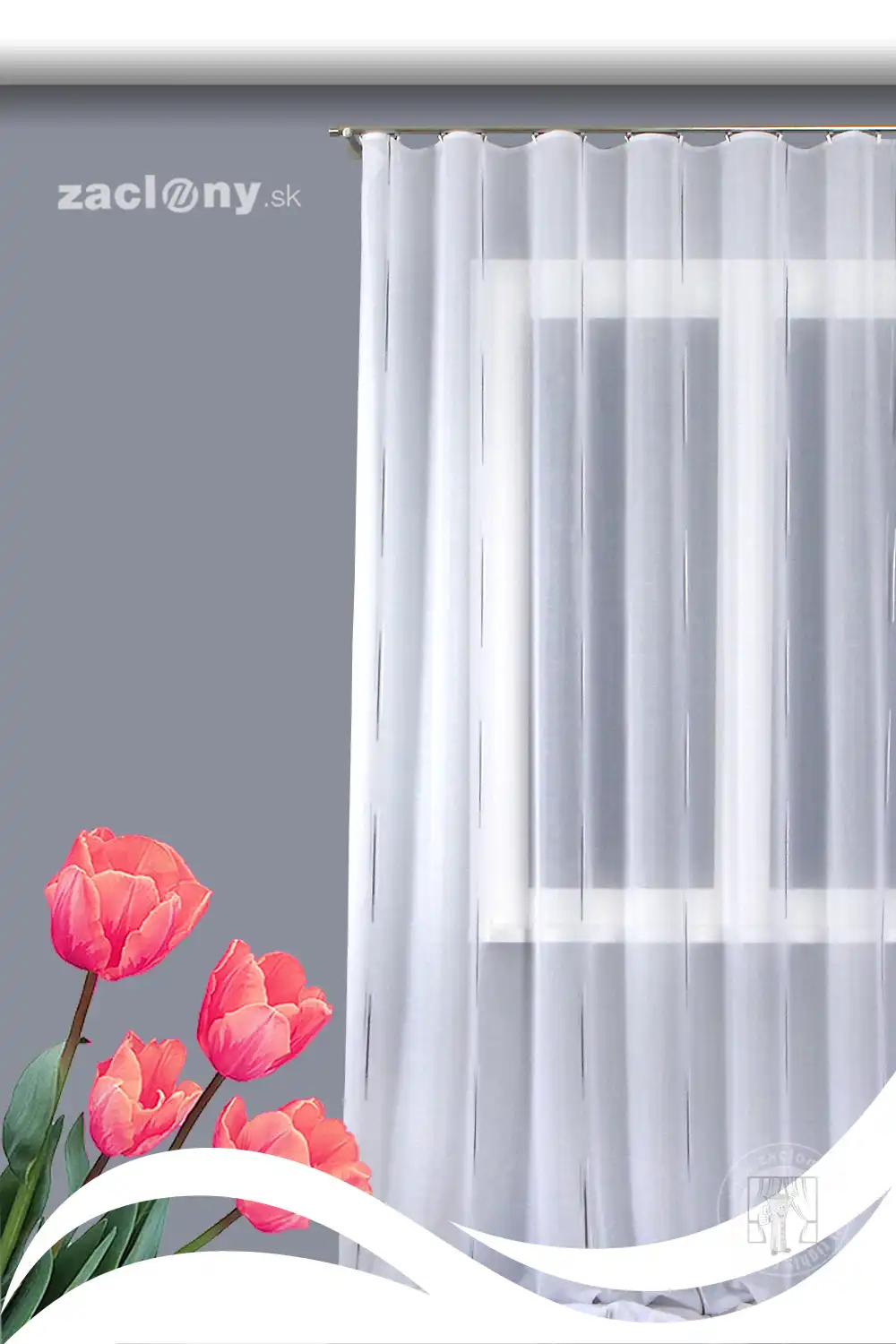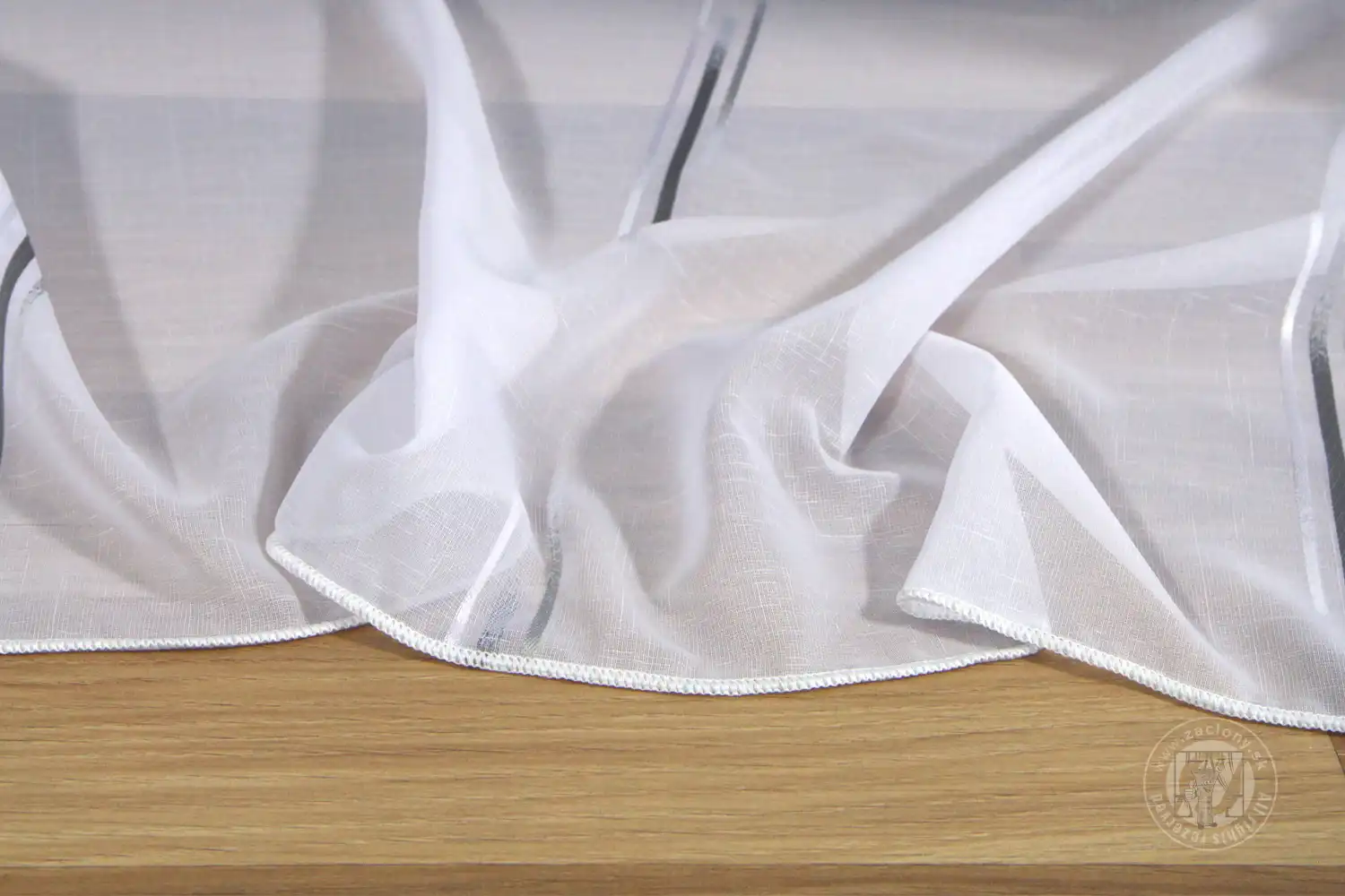 Moderná metrážna záclona, ktorá vyniká svojim pásikavým vzorom ťahajúcim sa pozdĺž celej záclony. Záclona je vyrobená z materiálu Voál, pre ktorý je charakteristická jemnosť a ľahkosť. Spodná strana záclony je lemovaná olovkom, ktoré zabezpečuje vždy dokonalý padavý vzhľad záclony.