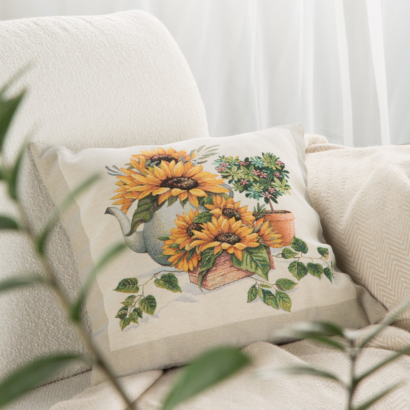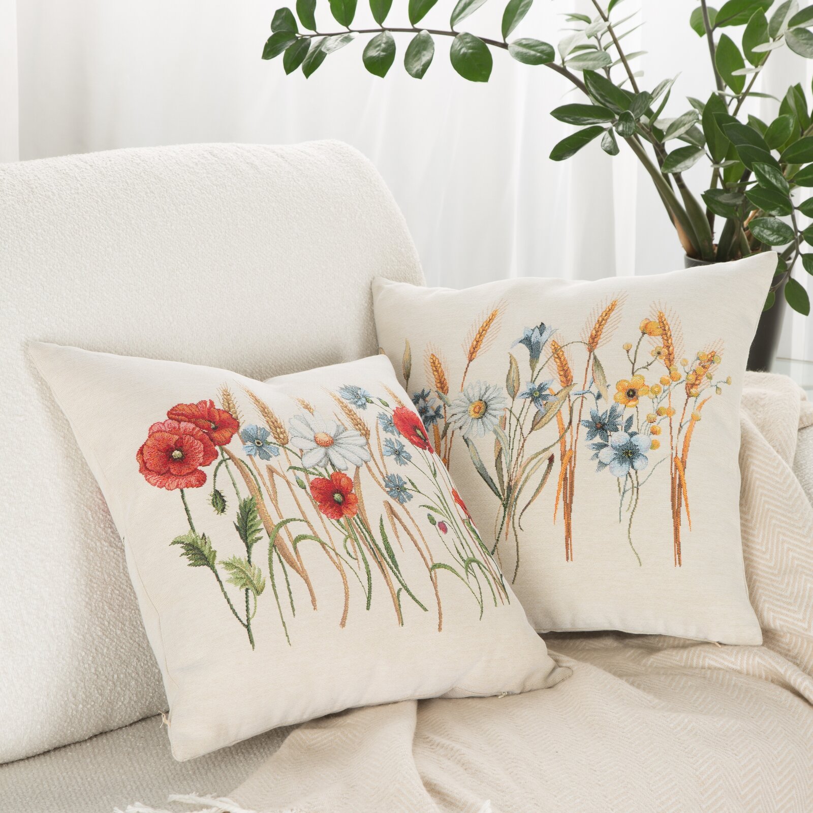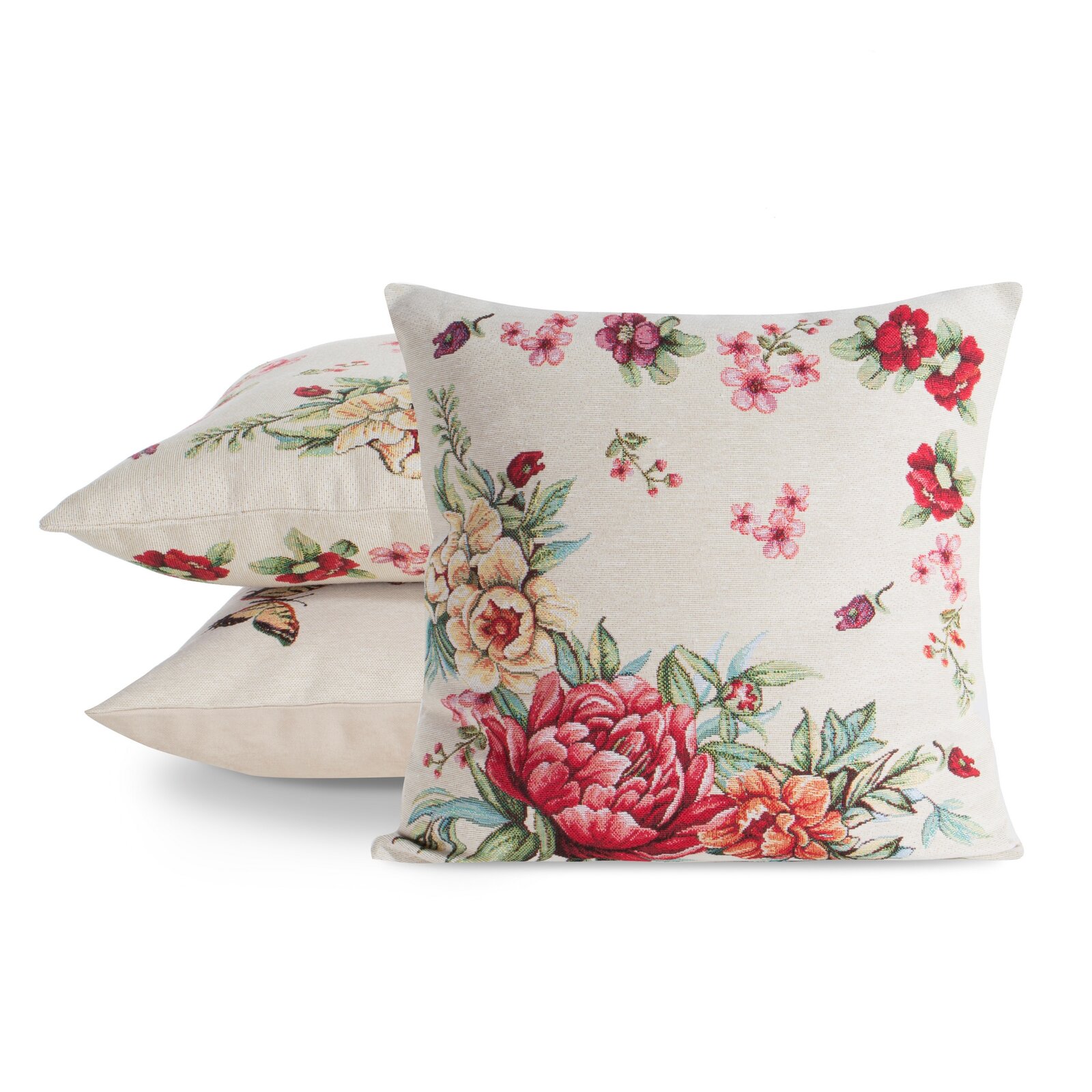 Gobelínová obliečka na vankúš 45x45cm naturálna s letnými kvetmi