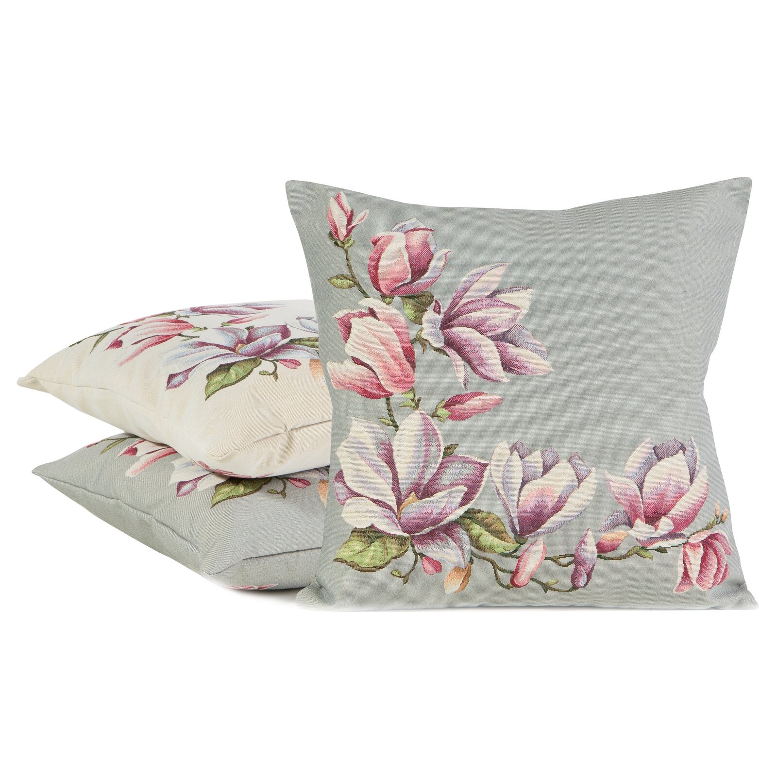 Gobelínová obliečka na vankúš 47x47cm sivá s magnóliami