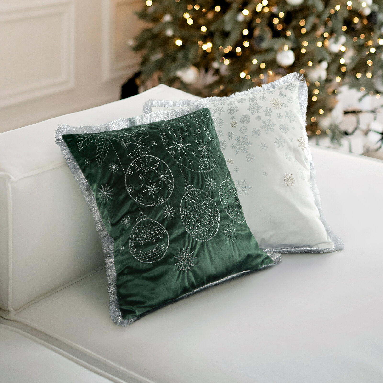 Vianočná obliečka na vankúš s výšivkou 45x45cm zelená/strieborná