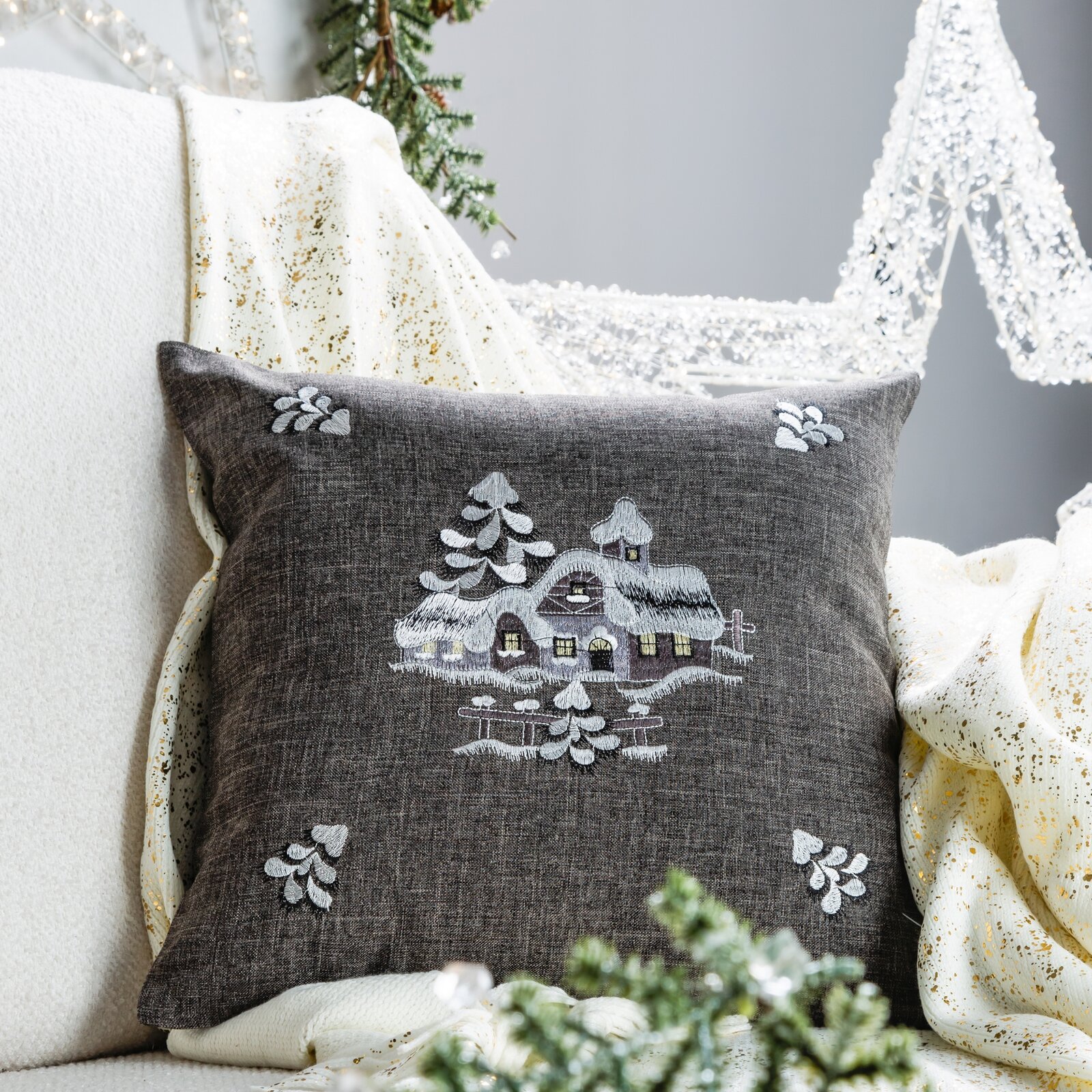 Vianočná obliečka na vankúš ZIMNÁ KRAJINA 45x45cm oceľová/strieborná