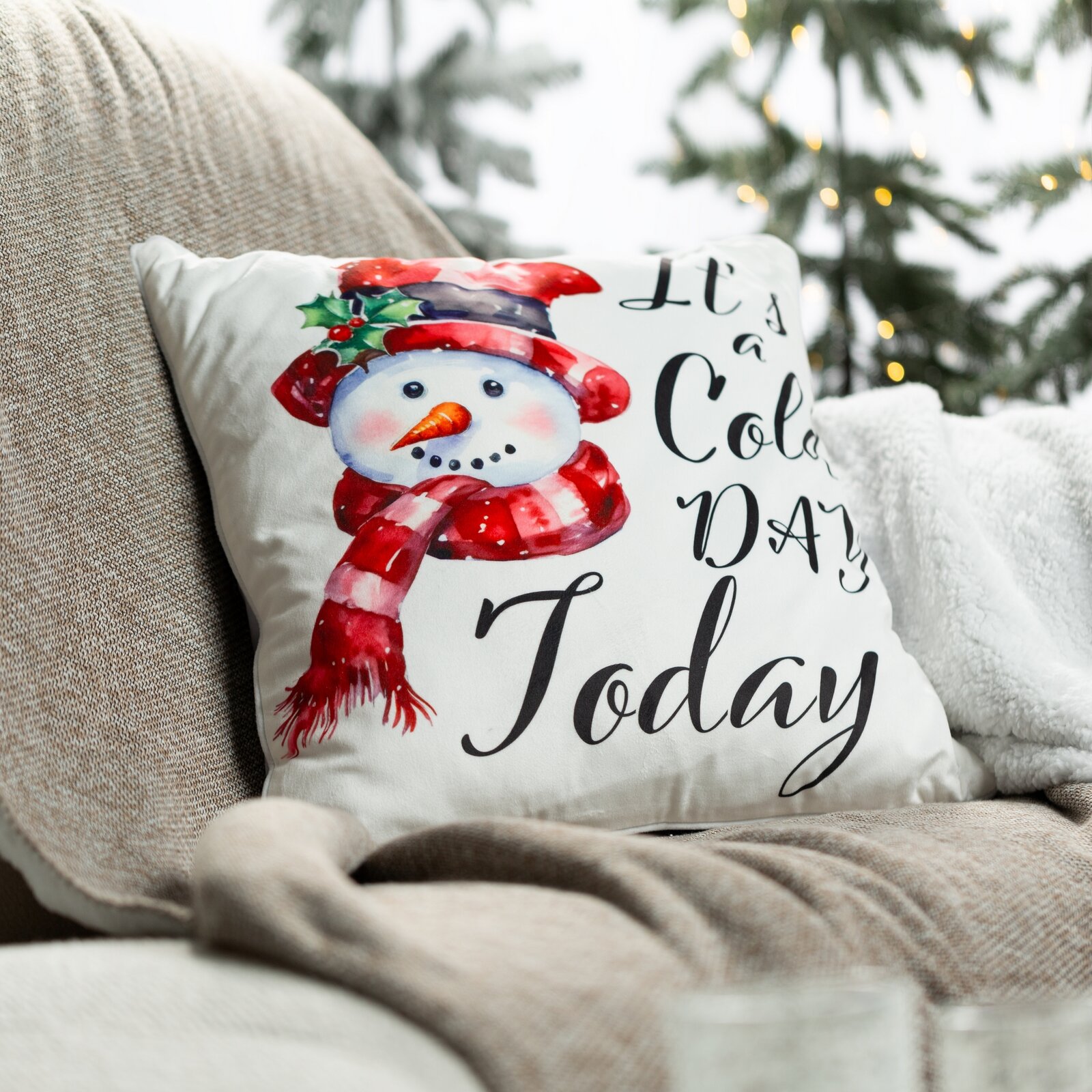 Vianočná obliečka na vankúš SNEHULIAK 45x45cm krémová/červená