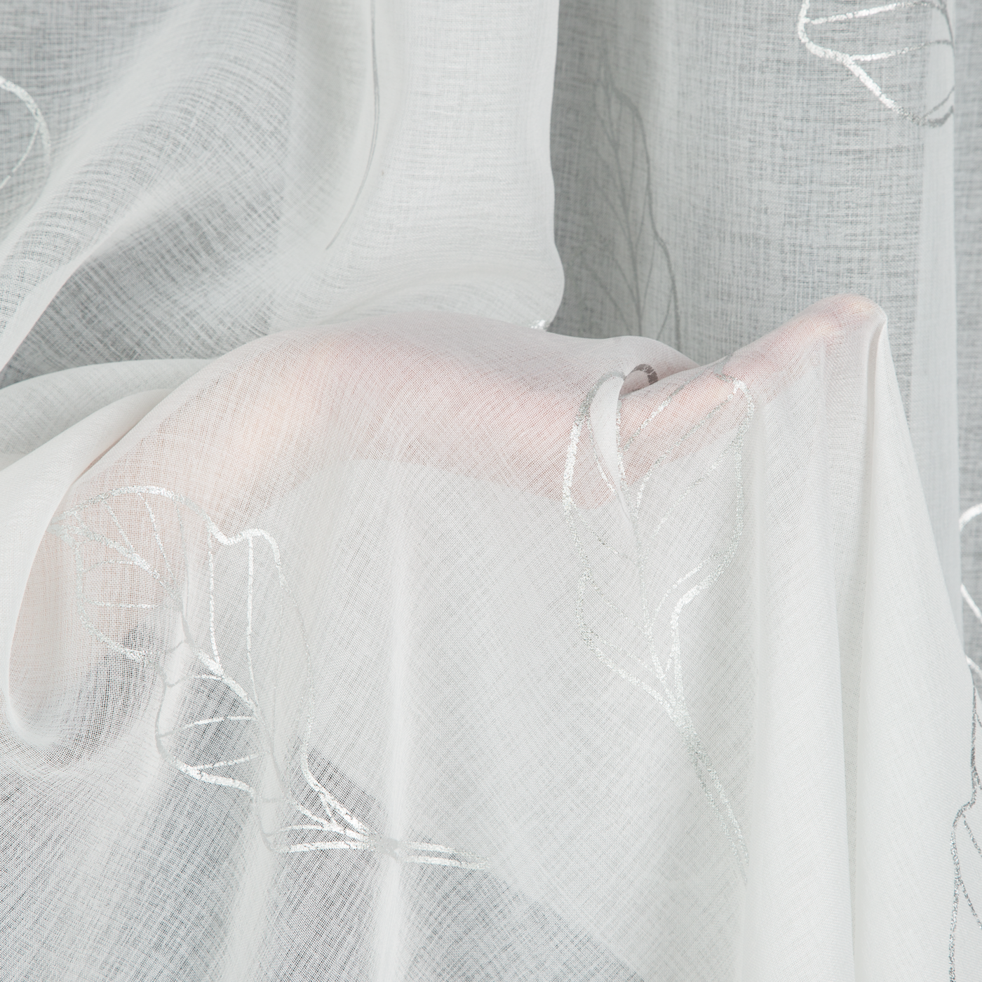 Záclona KELLY na krúžkoch biela so striebornou niťou 300x250cm