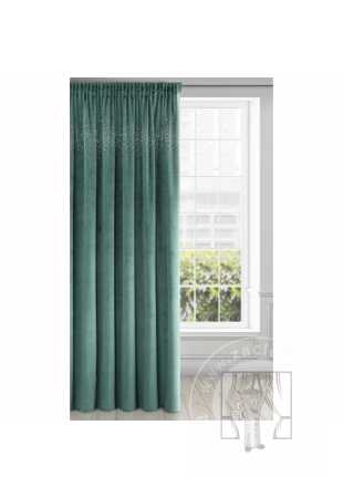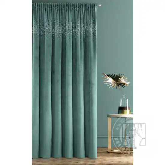Záves je vyrobený z mäkkej zamatovej látky zdobenej v hornej časti neobvyklou aplikáciou drobných, lesklých kamienkov. Mäkká matná tkanina dobre zakrýva okno a poskytuje pohodlnú atmosféru v interiéri. Táto pútavá dekorácia vyzerá v okne nádherne a určite si získa sympatie fanúšikov pôvabu.