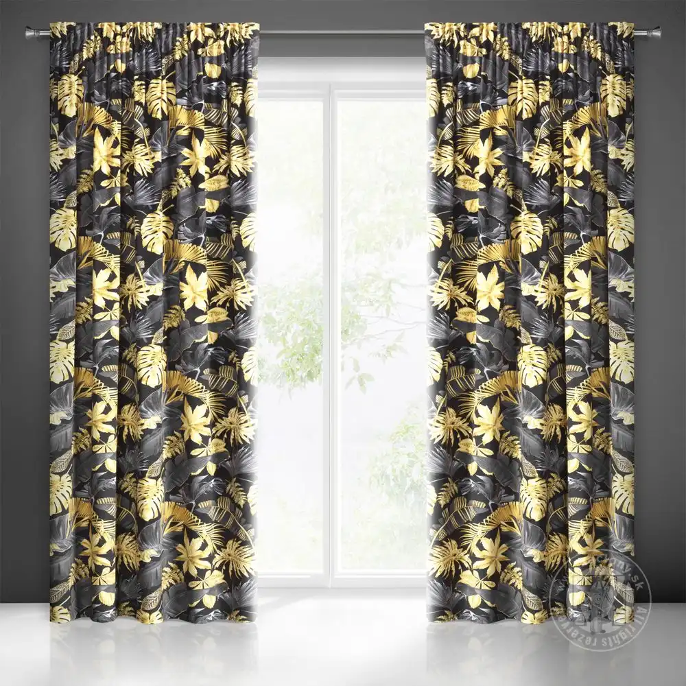 Záves z mäkkej zamatovej látky s rastlinnými vzormi poteší milovníkov módnych doplnkov. Hrubšia, kompaktná a zamatová tkanina dobre zakrýva okno, čo znamená, že účinne chráni váš interiér pred prebytočným svetlom a poskytuje večernú príjemnú klímu a pocit súkromia pomocou umelého osvetlenia.