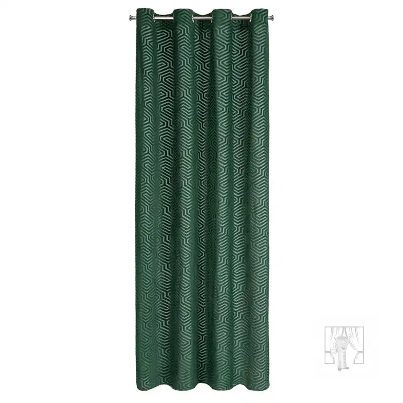 Luxusný záves INGA z matného zamatu láka svojou jemnosťou a zaujímavým geometrickým vzorom. Geometrický žakárový vzor na látke sa dosiahol tkaním. Jemná mäkkosť a jednotná farebnosť robia z tohto doplnku najlepšiu voľbu do interiérov v módnom štýle glamour. Vďaka praktickým kovovým krúžkom je možné dekoráciu ľahko zmeniť v priebehu niekoľkých okamihov. Hrubší vzor sa strieda s tenšími priehľadnejšími prvkami, takže záves vytvára v okne zaujímavý ažurový efekt. Ak hľadáte záves, ktorý nezatieni váš interiér, tento vás určite osloví. Elegantná tkanina sa bude hodiť do klasického aj typicky moderného interiéru.