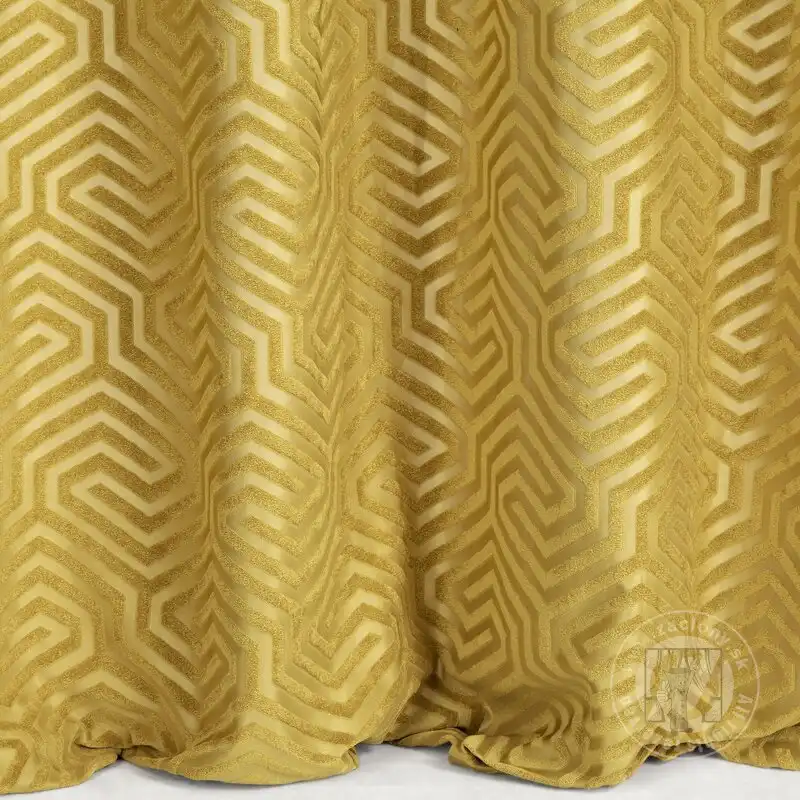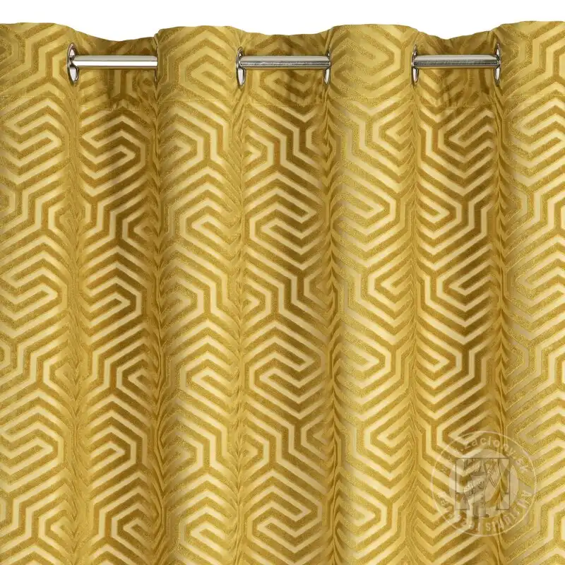Elegantný záves INGA z matného zamatu láka svojou jemnosťou a zaujímavým geometrickým vzorom. Geometrický žakárový vzor na látke sa dosiahol tkaním. Jemná mäkkosť a jednotná farebnosť robia z tohto doplnku najlepšiu voľbu do interiérov v módnom štýle glamour. Vďaka praktickým kovovým krúžkom je možné dekoráciu ľahko zmeniť v priebehu niekoľkých okamihov. Hrubší vzor sa strieda s tenšími priehľadnejšími prvkami, takže záves vytvára v okne zaujímavý ažurový efekt. Ak hľadáte záves, ktorý nezatieni váš interiér, tento vás určite osloví. Elegantná tkanina sa bude hodiť do klasického aj typicky moderného interiéru.