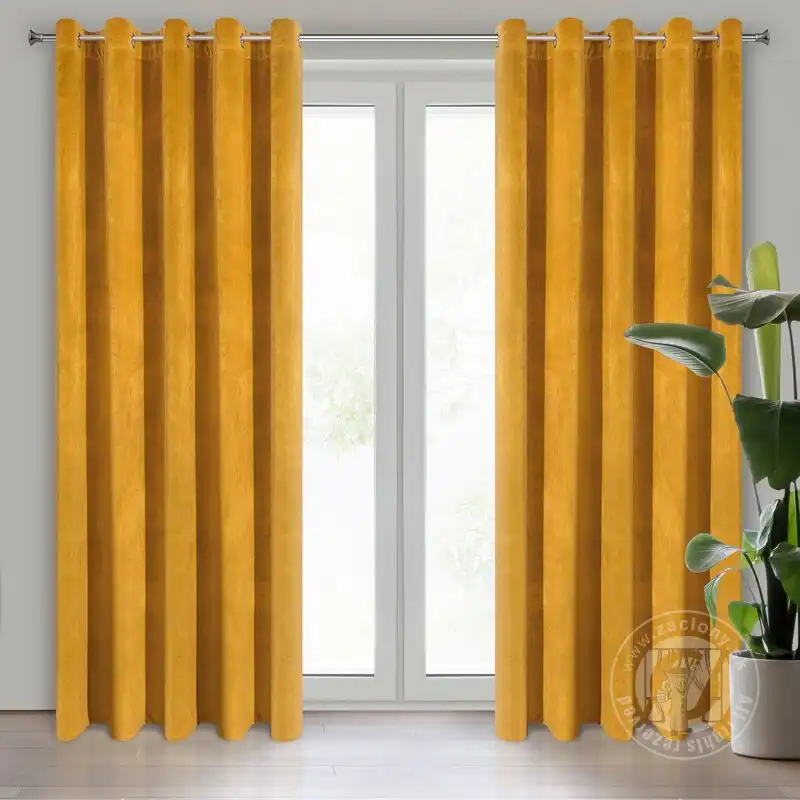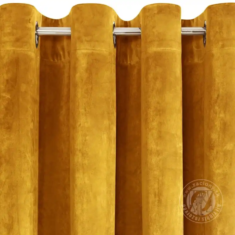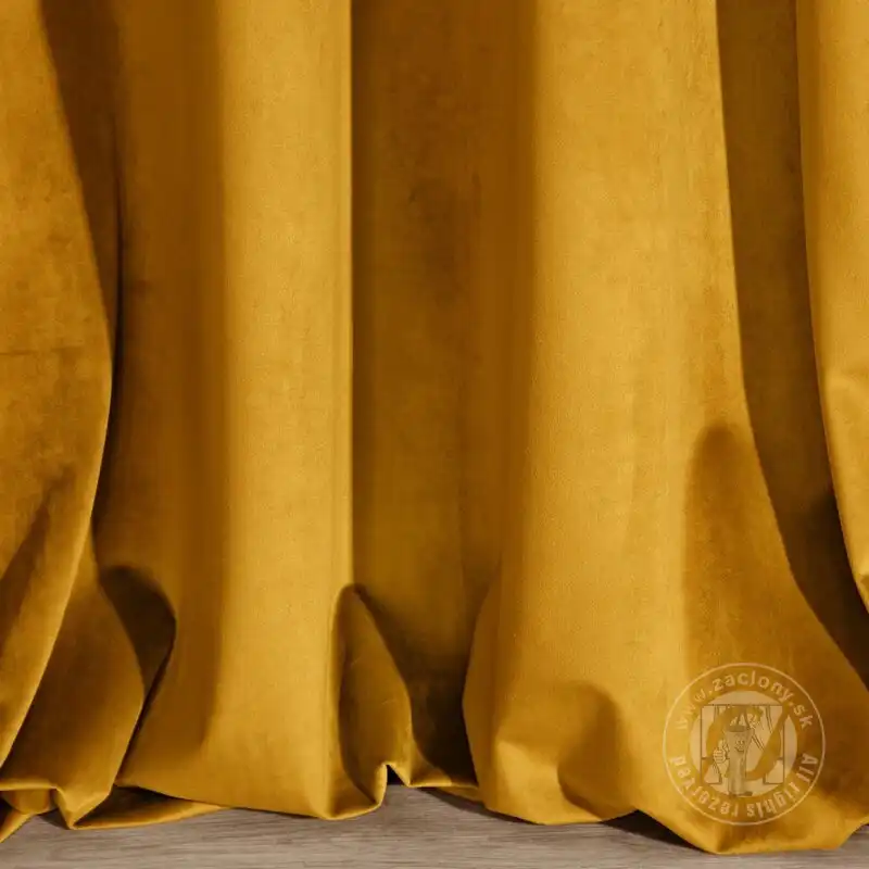 Pololesklý povrch a vysoká hmotnosť materiálu 290 g / m 2 zvýrazňujú hru svetla na povrchu závesu, ktorý dopĺňa farbu látky. Zamatové závesy sú kombináciou estetiky a funkčnosti.