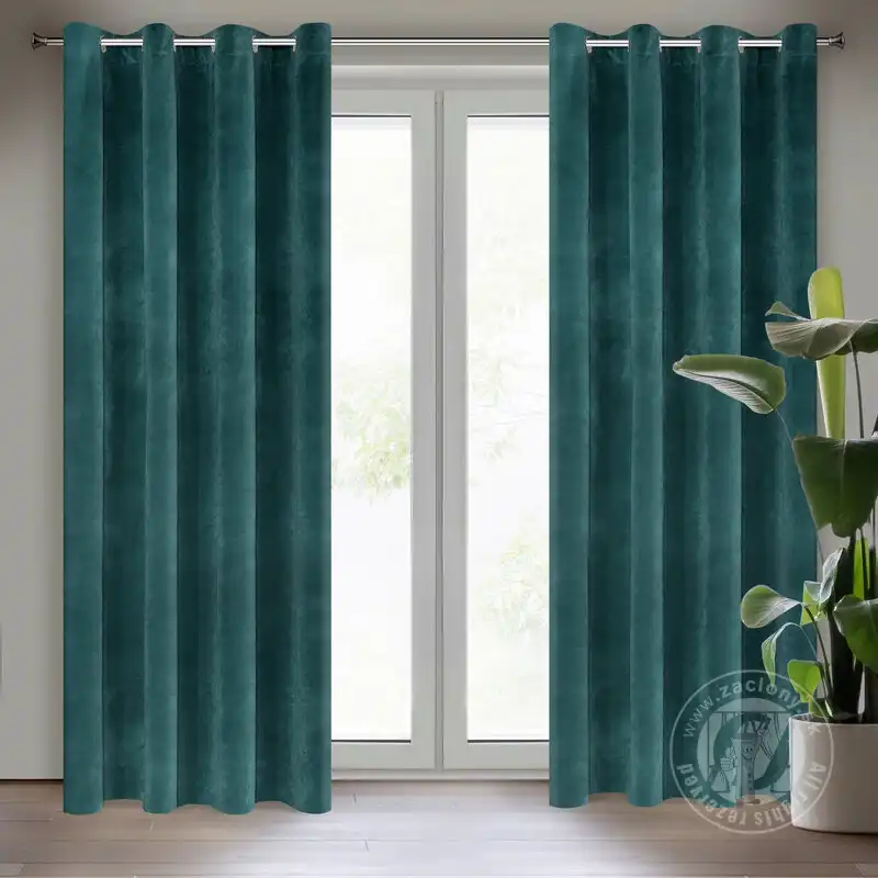 Pololesklý povrch a vysoká hmotnosť materiálu 290 g / m 2 zvýrazňujú hru svetla na povrchu závesu, ktorý dopĺňa farbu látky. Zamatové závesy sú kombináciou estetiky a funkčnosti.